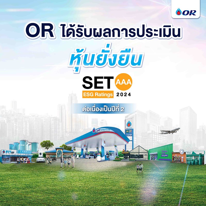 ม.ล. ปีกทอง กล่าวต่อไปว่า การที่ OR ได้รับการจัดอันดับ AAA จาก SET ESG Ratings ในปีนี้จึงสะท้อนให้เห็นถึงความมุ่งมั่นของ OR ในการสร้างการเติบโตทางธุรกิจ ควบคู่ไปกับการพัฒนาสังคมและสิ่งแวดล้อม และแน่นว่า เราจะยังคงเดินหน้าสร้างคุณค่าร่วมให้กับผู้มีส่วนได้ส่วนเสียทุกภาคส่วน เพื่อการเติบโตอย่างยั่งยืนไปด้วยกัน