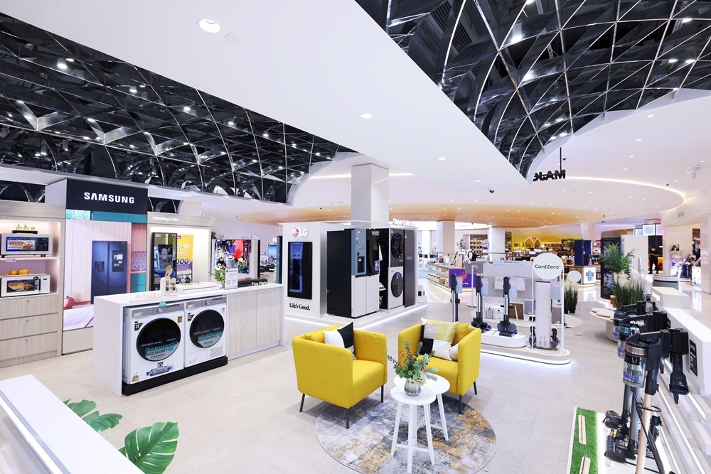 – Television & Audio: เนรมิตโฮมเธียเตอร์ภายในบ้านให้คุณได้เต็มอิ่มทุกอรรถรสความบันเทิง กับทีวีบิ๊กไซส์สุดล้ำด้วยนวัตกรรม AI ภาพคมชัดระดับ 8K ให้สีสวยสมจริงทุกการเคลื่อนไหว ใช้งานคู่กับเครื่องเสียงคุณภาพระบบ Dolby Atmos รอบทิศทาง มีให้เลือกสรรหลากหลายแบรนด์ชั้นนำ อาทิ ทีวีซัมซุง รุ่น Neo QLED 8K เด่นด้วยฟังก์ชัน Built in SmartThing Hub และ ซาวด์บาร์รุ่นฮิตยอดขายอันดับ 1 ของโลก รับชมจุใจกับทีวีจอยักษ์ขนาด 115 นิ้ว จากทีซีแอล ส่วนแอลจี นำเสนอทีวีรุ่น LG OLED evo ขนาด 97 นิ้ว ให้ภาพละเอียดสมจริง และรุ่น LG StandbyME จอสัมผัสเคลื่อนที่ และปรับหมุนได้ ตอบโจทย์ผู้ที่ชื่นชอบการสตรีมมิ่งคอนเทนต์ได้อย่างลงตัว