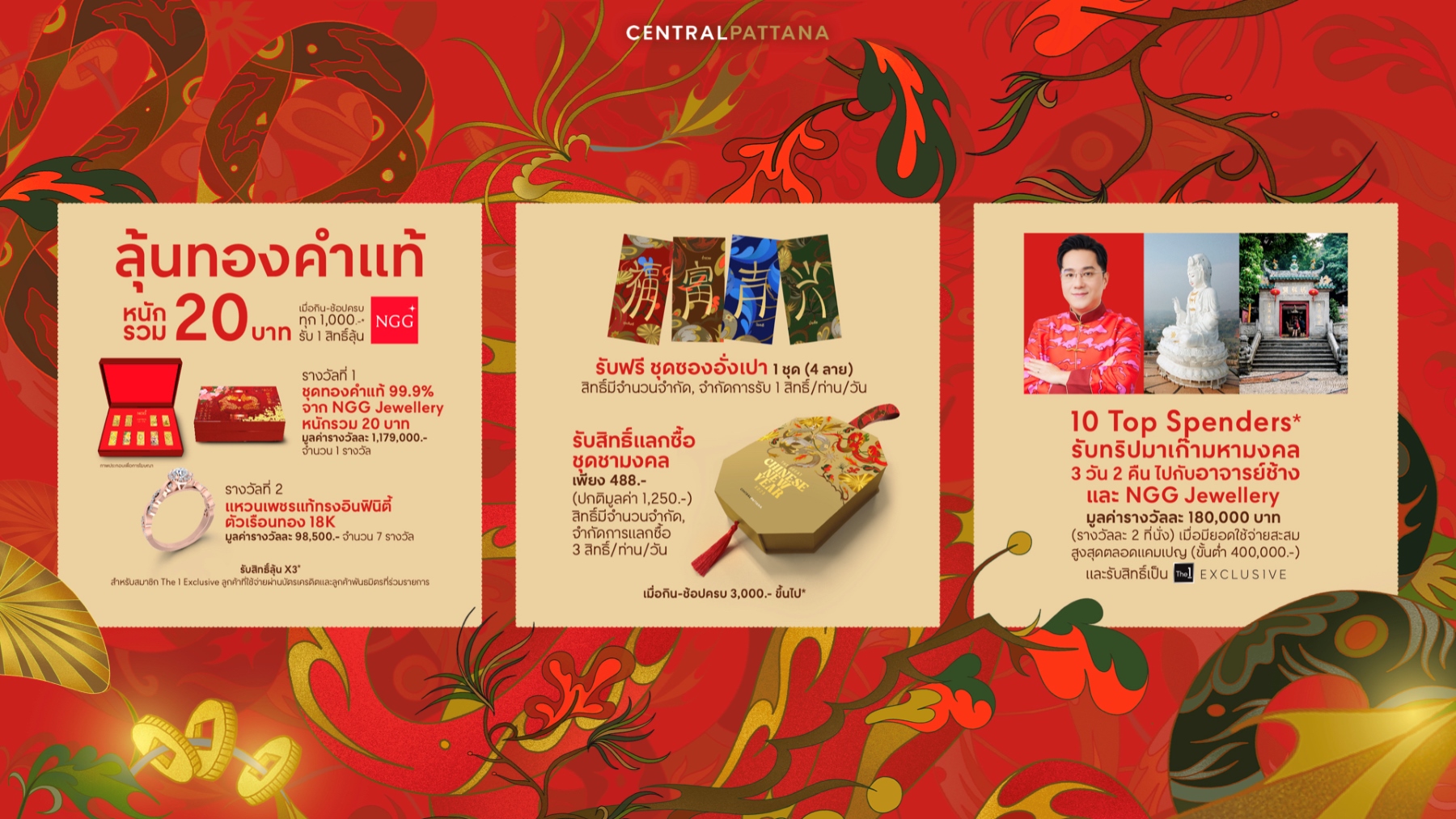 - “Shopping Experience” สัมผัสความยิ่งใหญ่แห่งการชอปปิงจากการผนึกกำลังของห้างเซ็นทรัล ในเครือเซ็นทรัล รีเทล ศูนย์การค้าในเครือเซ็นทรัลพัฒนา และ Central The 1 Credit Card ที่พร้อมใจมอบสิทธิประโยชน์สุดคุ้ม และของขวัญดีไซน์ลิมิเต็ด เอดิชัน ช้อปเพลินฉลองตรุษจีนที่ “Chinese Market” บนทุกแพลตฟอร์ม