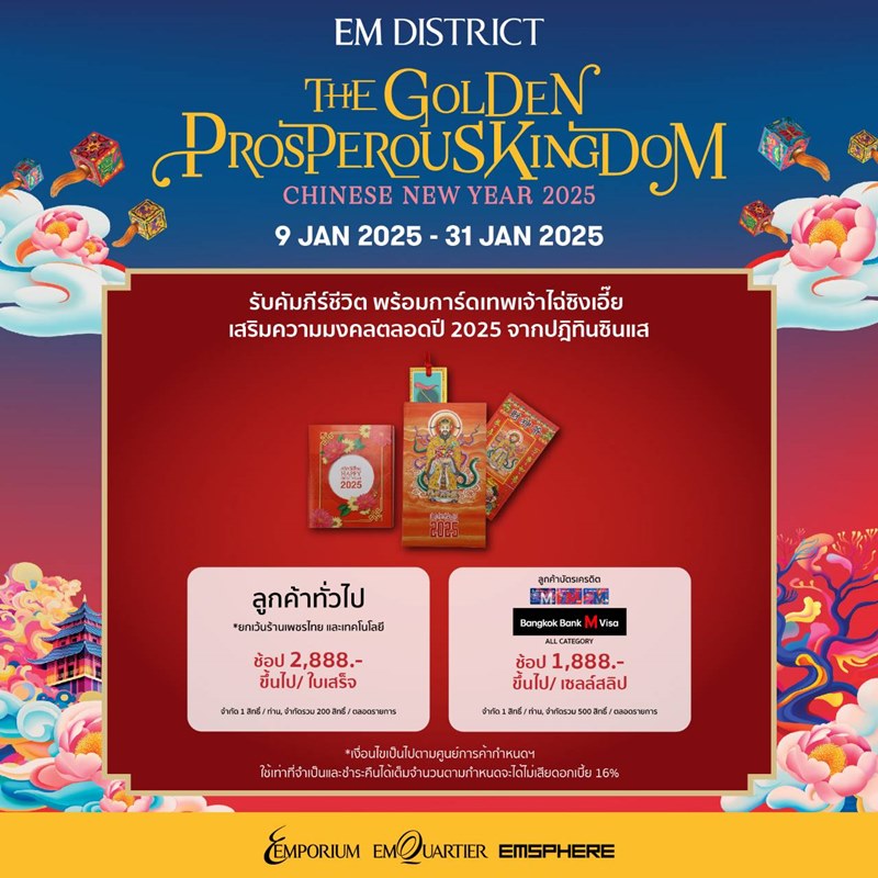 อีเว้นต์ฉลองเทศกาลตรุษจีนปีมะเส็ง 2568 สุดยิ่งใหญ่ ในแคมเปญ “EM DISTRICT THE GOLDEN PROSPEROUS KINGDOM CHINESE NEW YEAR 2025” ภายใต้คอนเซ็ปต์ “THE GOLDEN YEAR OF FRIENDSHIP” ระหว่างวันที่ 22 มกราคม – 23 กุมภาพันธ์ 2568 ที่ เอ็ม ดิสทริค