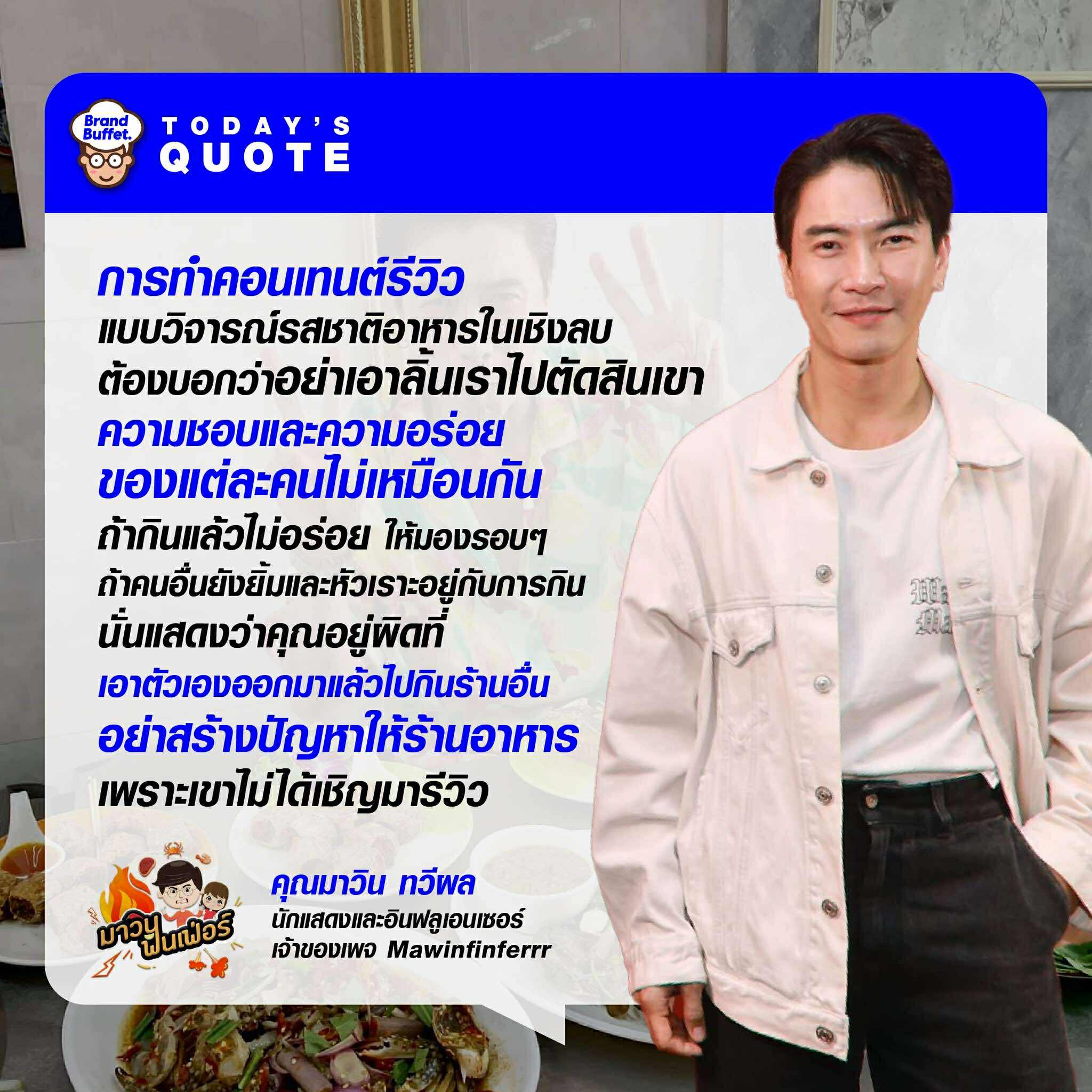 หลังจากทำคอนเทนต์รีวิวอาหารมา 6 ปี “เรา (มาวินและคุณตู่) ไม่คิดว่าคอนเทนต์รีวิวอาหารจะมาได้ไกลขนาดนี้ จากวันที่เริ่มกันเอง 2 คน”