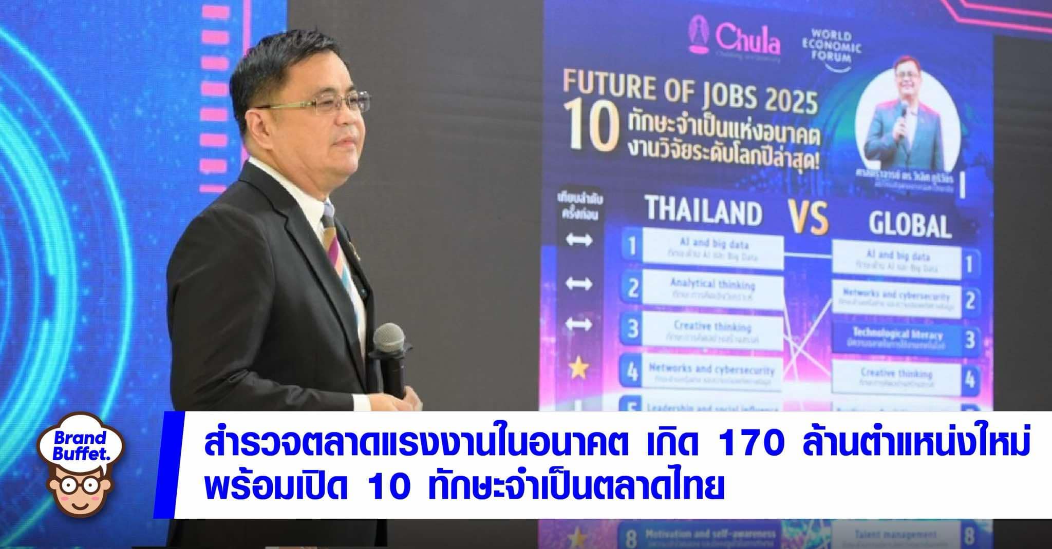ศาสตราจารย์ ดร.วิเลิศ ภูริวัชร อธิการบดี จุฬาลงกรณ์มหาวิทยาลัย สรุปข้อมูลรายงาน “Future of Jobs 2025” ซึ่งจุฬาลงกรณ์มหาวิทยาลัยเป็นตัวแทนหนึ่งเดียวในประเทศไทยร่วมกับ World Economic Forum ในการเสนอแนวทางเพื่อรับมือการเปลี่ยนแปลงของตลาดแรงงานในระหว่าง ปี 2568–2573