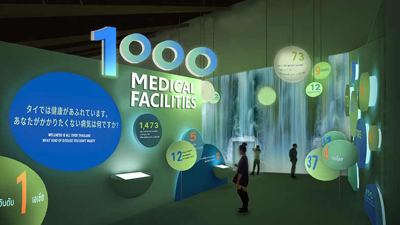 - 1,000 สถานบริการทางการเเพทย์ (Medical Facilities) กว่า 1,000 สถานบริการเพื่อสุขภาพที่ตอบรับ คนทั้งโลก ครอบคลุมการส่งเสริมสุขภาพ รักษา ฟื้นฟูตลอดจนการพักผ่อนระยะยาวที่ได้มาตรฐานสากล เพื่อให้ประเทศไทยเป็นดินแดนเป้าหมายสุขภาพดีรองรับสังคมแห่งอนาคต สามารถเข้าถึงได้จากจำนวนสถานบริการทางการแพทย์ที่หลากหลาย ครอบคลุมการรักษาทุกโรคและได้มาตรฐานสากล เช่น JCI, HA ฯลฯ พร้อมแนะนำสถานที่ท่องเที่ยวเชิงส่งเสริมสุขภาพที่แสดงให้เห็นว่าธรรมชาติของไทยสามารถฟื้นฟูทั้งร่างกายเเละเยียวยาจิตใจได้ผ่าน Immersive Experience ของ “Thai Nature Therapy”