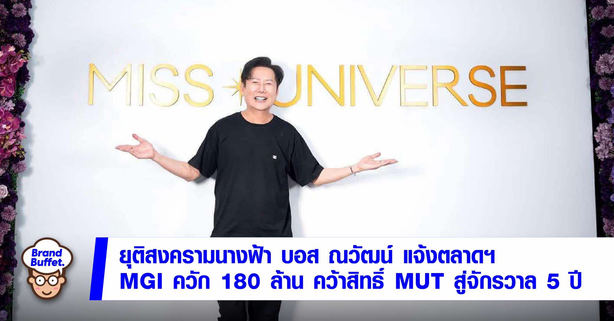 บมจ. มิสแกรนด์ อินเตอร์เนชั่นแนล หรือ MGI ของ “บอสณวัฒน์” คุณณวัฒน์ อิสรไกรศีล ผู้ก่อตั้งมิสแกรนด์ แจ้งตลาดหลักทรัพย์ฯ เข้าลงทุนซื้อลิขสิทธิ์การจัดประกวดมิสยูนิเวิร์สไทยแลนด์ (MUT) ปี 2568 – 2572 รวม 5 ปี มูลค่า 180 ล้านบาท