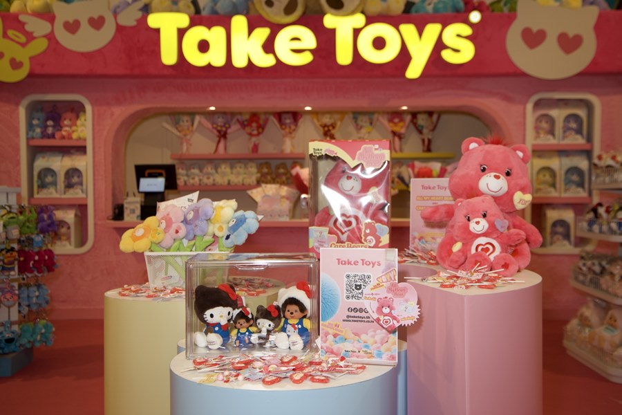 โดย Take Toys ยังยกขบวนสินค้าสุดพิเศษ อาทิ Care Bears, Monchhichi, Esther bunny และคาแรคเตอร์สุดฮิตอื่นๆอีกมากมาย มาให้ช้อปกันแบบจัดเต็ม พร้อมเปิดตัวสินค้า Exclusive Valentines Collection ที่นี่เป็นที่แรก อาทิเช่น Care Bears All My Heart รุ่นพิเศษ แบ่งปันความรู้สึกอันลึกซึ้งและหอมหวานในช่วงเทศกาลแห่งความรักผ่าน All My Heart Bear เจ้าหมีสีชมพูหวานแหววน่าเอ็นดูมาพร้อมเอกลักษณ์ลายปักหัวใจ และคำน่ารักๆ เช่น “จุ๊บๆ” “กอดหน่อย” “รักเธอ” หัวใจแม่เหล็กที่สามารถถอดติดได้ พิเศษเฉพาะประเทศไทย สามารถอัดเสียงได้ ไม่ว่าจะบอกรักใครก็ไม่ต้องเขิน ให้หมี All my heart bear เป็นของขวัญแทนการบอกความในใจได้เลย, ดอกไม้ Care Bears Bloom เปลี่ยนการให้ดอกไม้ให้กลายเป็นสิ่งที่คงอยู่ตลอดไป กับดอกไม้สุดนุ่มฟู น่ารัก คอลเลคชั่นนี้มีให้เลือก 5 คาแรคเตอร์สุดฮิต ได้แก่ Love-a-lot / Grumpy / Share Bear / Funshine/ Friend Bear มาพร้อมดีเทลลายปักสัญลักษณ์ของคาแรคเตอร์ต่างๆ มาอยู่บนกลีบ และกล่องแบบ Ready to gift! และ Monchhichi x Hello Kitty Collectionคอลเลคชั่นพิเศษฉลองครบรอบ 50 ปี ไม่ต้องตามหาอีกต่อไป มีพร้อมขายแบบไม่ต้องรอที่ Take Toys Drop แรกมีสินค้า 4 แบบ ทั้ง ตุ๊กตาและพวงกุญแจ