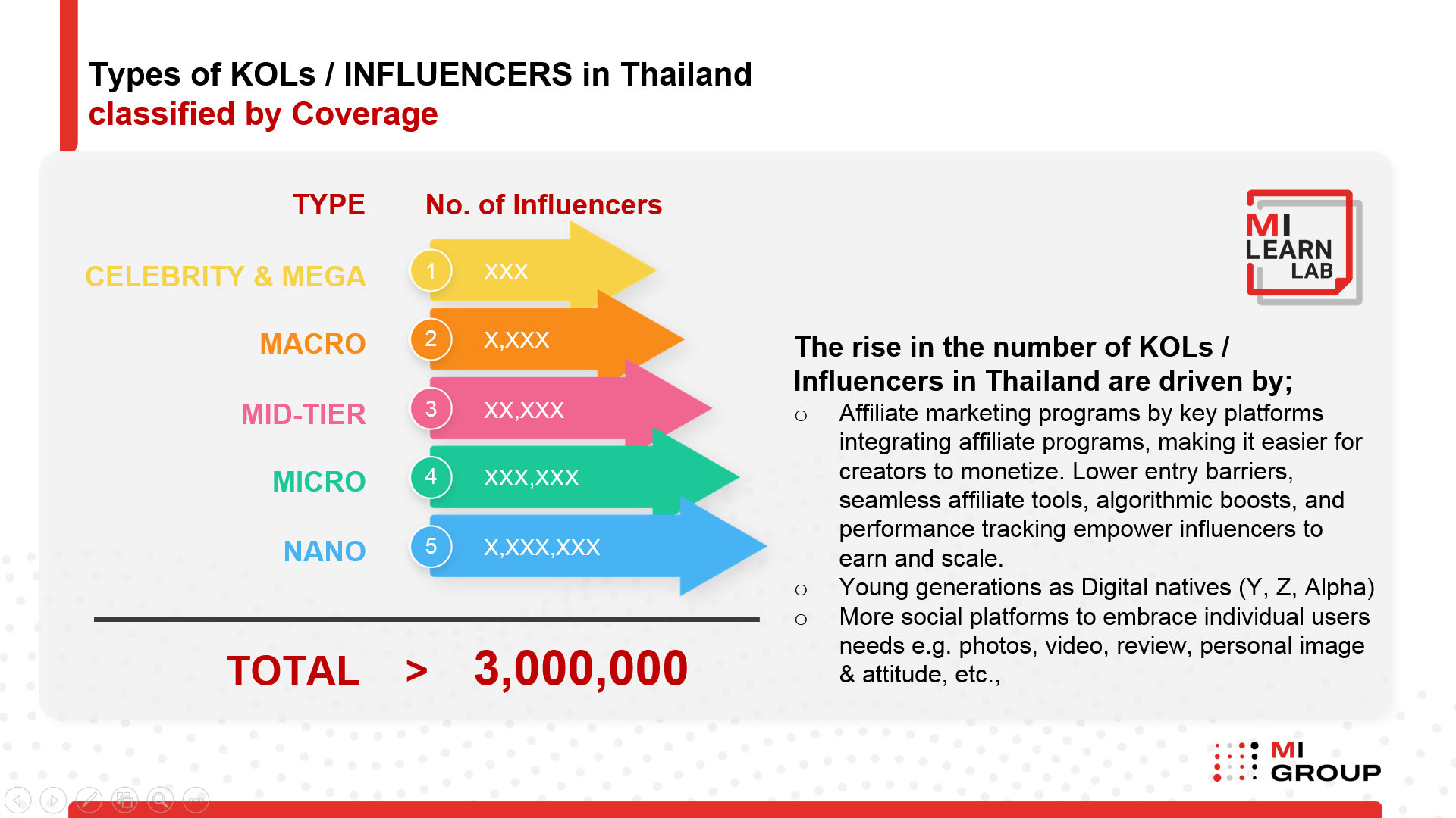 – Influencers/ Creators/ พ่อค้าแม่ค้าออนไลน์ มือสมัครอาชีพ (จริงจังในการหารายได้ผ่านช่องทางต่างๆ) มีจำนวน 3 ล้านราย