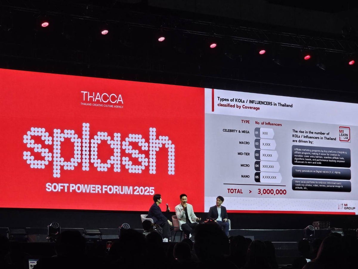 ในงาน SPLASH – Soft Power Forum 2025 จัดโดยสำนักงานส่งเสริมการจัดประชุมและนิทรรศการ (องค์การมหาชน) หรือ TCEB และสำนักงานส่งเสริมวัฒนธรรมสร้างสรรค์ หรือ THACCA เปิดเวทีเสวนา SPARK Influencer Marketing Power for Event Creators เมืองแห่งเทศกาลผสานพลังอินฟลูเอนเซอร์ขับเคลื่อนเศรษฐกิจไทย