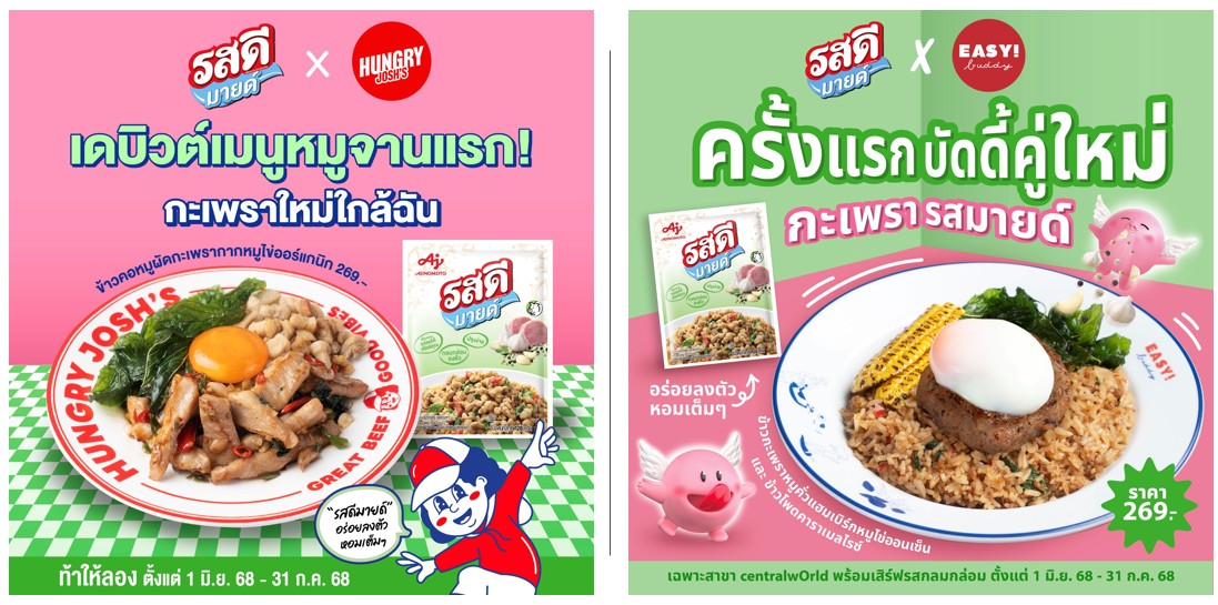 เตรียมตัวให้พร้อมกับประสบการณ์ความอร่อยแบบดับเบิล! เพราะ “รสดีมายด์” จับมือ 2 ร้านอาหารสุดฮอต “Hungry Josh’s” และ “Easy! Buddy” สร้างสรรค์เมนูแคมเปญสุดพิเศษ ที่ทั้งอร่อย กลมกล่อม ปรุงโดย “รสดีมายด์” ที่ลดเกลือ 15%* (เมื่อเทียบกับสูตรออริจินัล) ให้รสชาติที่นุ่มนวล ตอบโจทย์กับทุกเมนูและยังคงความหอมอันเป็นเอกลักษณ์ไว้แบบจัดเต็ม!