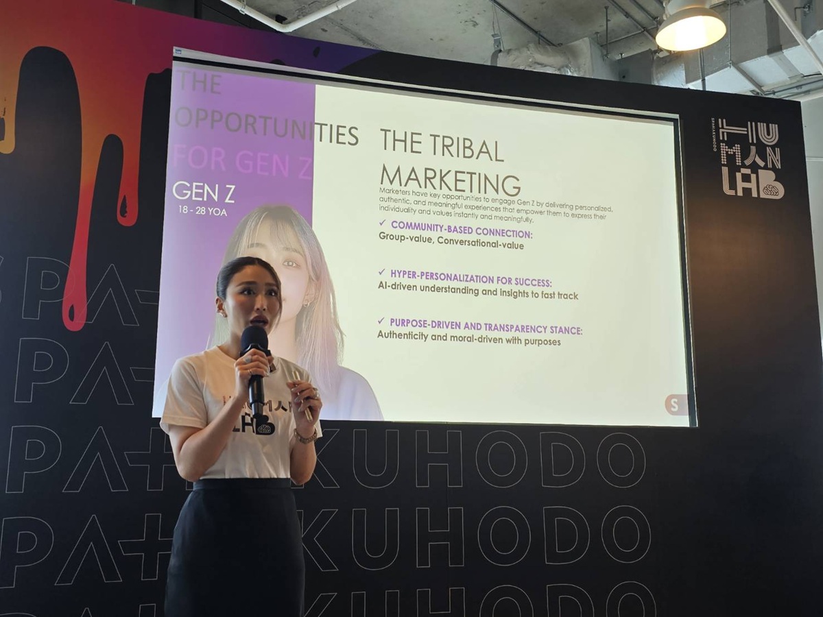คุณนัฐกาญจน์ วัฒนมงคลศิลป์ ผู้อำนวยการสถาบันวิจัย ฮิวแมน แล็บ และหัวหน้าแผนกวางแผนกลยุทธ์ สปา-ฮาคูโฮโด และ คุณพิมพิศา จุฬา เทิดทูลทวีเดช ผู้อำนวยการวางแผนโซลูชั่นทางธุรกิจ หน่วยงานแพลนท์ (Plant) สปา-ฮาคูโฮโด ร่วมกันเปิดเผยผลวิจัยล่าสุด Daring Palette ในกลุ่มผู้บริโภค 4 Gen ซึ่งแต่ละ Gen มีสเปคตัมแตกต่างกันในการใช้ชีวิต จากมุมมองทัศนคติของ Gen