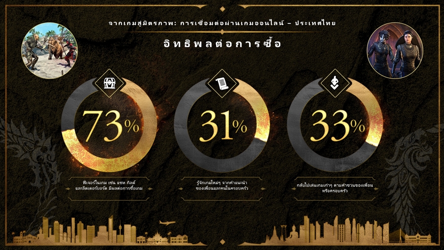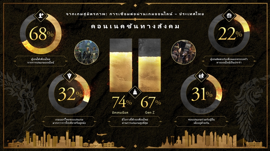 ผลวิจัยนี้แสดงให้เห็นว่า 68% ของผู้เล่นใช้เกมออนไลน์อย่าง ESO ในการหาเพื่อนใหม่ ๆ นับเป็นการตอกย้ำบทบาทของเกมในฐานะแพลตฟอร์มที่ประสบความสำเร็จในการส่งเสริมการเชื่อมโยงทางสังคม