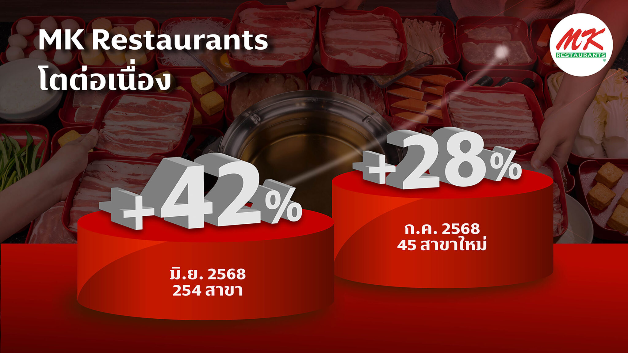 MK Restaurants เปิดความสำเร็จ โปรโมชั่น คุ้มคุ้ม อิ่มไม่อั้น 299 บาท พบดึงลูกค้าเก่ากลับมาได้ถึง 370% โดยในเดือน มิถุนายน 2568 ทำโปรโมชั่น 254 สาขา ยอดเติบโต 42% และเดือน กรกฎาคม 2568 เปิดเพิ่มอีก 45 สาขา รวม 299 สาขาทั่วประเทศ โดย 45 สาขาที่ให้บริการเพิ่มนี้ได้สร้างยอดเติบโต 28%