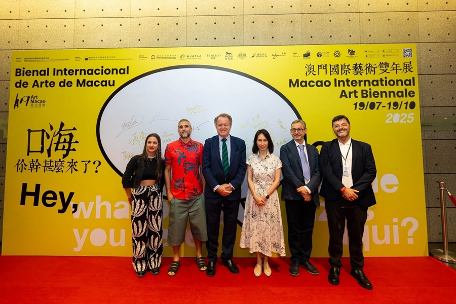 (From left to right) Ms. Sheila Canestro and Mr. Cyro Garcia, artists from Malaga in Spain; Mr. Luis Lafuente, Director of the Agencia Pública para la Gestión de la Casa Natal de Pablo Ruiz Picasso y otros Equipamientos Museísticos y Culturales; Ms. Daisy Ho, Managing Director of SJM; Mr. Mario Virgilio Montañez, Jefe del Negociado de Promocion Cultural en Museo Casa Natal Picasso and Mr. Salvador Nadales Zayas, Advisor, Culture and Heritage, Málaga City Council attended the opening ceremony of Art Macao 2025.