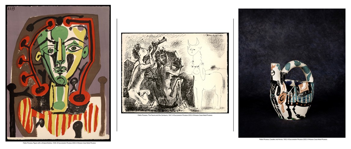 ภายใต้ธีม Art Macao 2025 “Hey, what brings you here?” นิทรรศการ “Picasso: Beauty and Drama” ถ่ายทอดพัฒนาการทางความคิดสร้างสรรค์ของปิกัสโซตลอดช่วงเวลาของชีวิต ผ่านหลากหลายผลงานและสื่อ โดยเน้นมิติทางอารมณ์และสายสัมพันธ์ที่เขามีต่ออันดาลูเซีย (Andalusia) บ้านเกิดของเขา ผลงานเด่นของปิกัสโซมีมากมาย อาทิ “Figure in Striped Bodice” ภาพวาดเพื่อคู่รักของเขา, “Paloma with Doll, Black Background” ภาพเหมือนอันอ่อนโยนของลูกสาววัย 5 ขวบของเขา, “Knight and Horse” ผลงานเซรามิกชิ้นเอก และ “Painter with Brush and Model with Headscarf” การตีความใหม่ของห้องทำงานศิลปิน