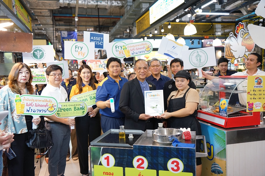 และในวันเดียวกัน ผู้บริหารจากทุกหน่วยงานได้ร่วมกิจกรรม Fry to Fly เยี่ยมชมร้านค้าที่มีการใช้น้ำมันปรุงอาหาร ร่วมทดสอบหาค่าสารโพลาร์ในน้ำมันปรุงอาหาร และเริ่มรับซื้อน้ำมันปรุงอาหารใช้แล้วจากร้านค้าในตลาดยิ่งเจริญ เพื่อกระตุ้นความร่วมมือ และสร้างการรับรู้ให้แก่ผู้ประกอบการภายในพื้นที่ตลาด ความร่วมมือในครั้งนี้แสดงถึงบทบาทของภาคธุรกิจในการยกระดับพื้นที่ตลาดและชุมชนสู่การเป็นต้นแบบ “พื้นที่สีเขียว” ที่ส่งเสริมการบริโภคอย่างปลอดภัย ควบคู่กับการดูแลสิ่งแวดล้อม และเป็นตัวอย่างของการขับเคลื่อนเศรษฐกิจหมุนเวียนในระดับชุมชน ที่เชื่อมโยงสิ่งแวดล้อม สุขภาพ เทคโนโลยี และเศรษฐกิจเข้าด้วยกันอย่างยั่งยืน