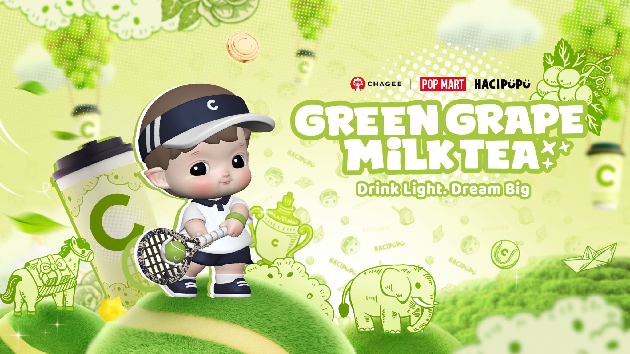 ส่วนการเลือก “HACIPUPU” เด็กผู้ชายขี้อายที่เต็มไปด้วยจินตนาการ เสน่ห์ความน่ารักนี้ทำให้แฟนๆ ยิ้มได้ทุกครั้ง สดใสในทุกวัน ด้วยความน่ารักและความมุ่งมั่นทำให้ HACIPUPU ได้เป็นตัวแทนเพื่อสะท้อนตัวตนของชารสชาติใหม่อย่าง “Green Grape Milk Tea” ที่สดชื่น หอม หวานกำลังดี พร้อมมอบพลังบวกทุกครั้งที่ดื่ม พร้อมของสะสมสุดลิมิเต็ดเอาใจแฟนๆ ใน 4 ประเทศทั่วโลก ได้แก่ ประเทศไทย, สิงคโปร์, มาเลเซีย และอินโดนีเซีย