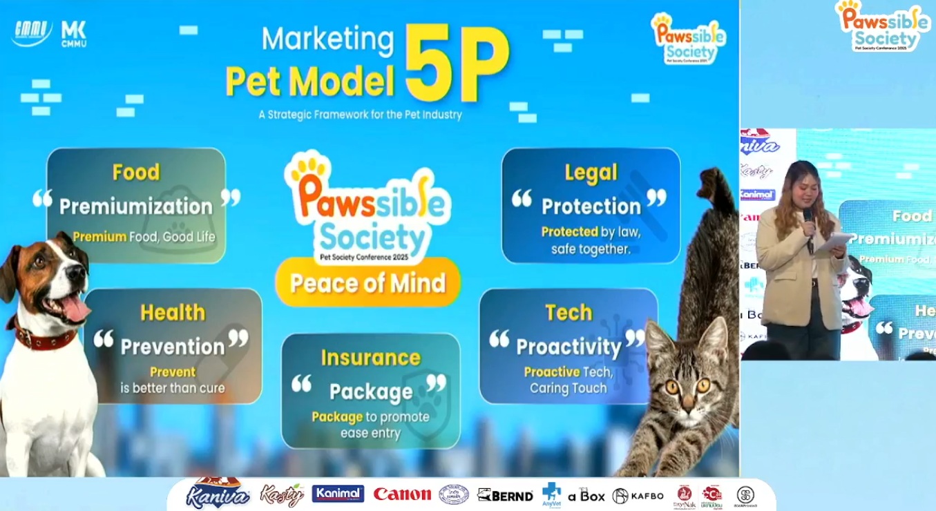กระแสดังกล่าวสะท้อนให้เห็นว่าหัวใจของตลาดสัตว์เลี้ยงวันนี้ ไม่ได้อยู่ที่สินค้าหรือบริการที่ตอบสนองความต้องการดูแลขั้นพื้นฐานเท่านั้น แต่ยังต้องตอบโจทย์ “Peace of Mind” ที่ทำให้เจ้าของมั่นใจว่าสัตว์เลี้ยงจะมีชีวิตที่ดีและอายุยืนยาว ถือเป็นโอกาสทางการตลาดที่สำคัญของผู้ประกอบการและนักการตลาดควรให้ความสนใจเป็นพิเศษ