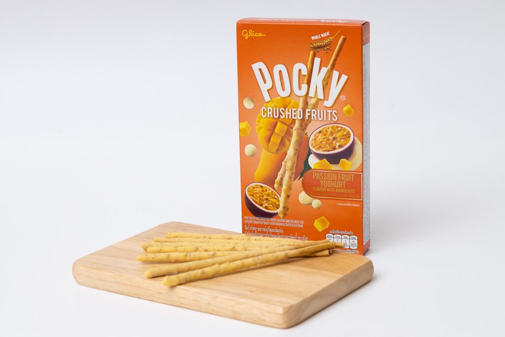 สำหรับป๊อกกี้ ครัชฟรุต รสเสาวรสโยเกิร์ตและเกล็ดมะม่วง สร้างสรรค์ขึ้นด้วยผลไม้แท้ 100% ผสมผสานอย่างลงตัวกับโยเกิ ร์ตธรรมชาติ คุกกี้โฮลวีตกรุบกรอบ บนแท่งบิสกิตมัลติเกรน มอบความสดชื่นแบบทรอปิคอลที่ เปรี้ยวหวานสมดุลอย่างลงตัว ขณะเดียวกัน ยังให้ความสำคัญกั บการออกแบบบรรจุภัณฑ์ให้สะท้ อนถึงความสดชื่นแบบทรอปิคอลด้วย โดยเลือกใช้ดีไซน์สีสั นสดใสและลวดลายผลไม้ เสริมภาพลักษณ์ความเป็นพรีเมียม สร้างความโดดเด่นบนชั้นวางสินค้ า รวมถึงกระตุ้นอารมณ์ให้ผู้บริ โภคอยากลองชิมตั้งแต่ยังไม่เปิ ดกล่อง