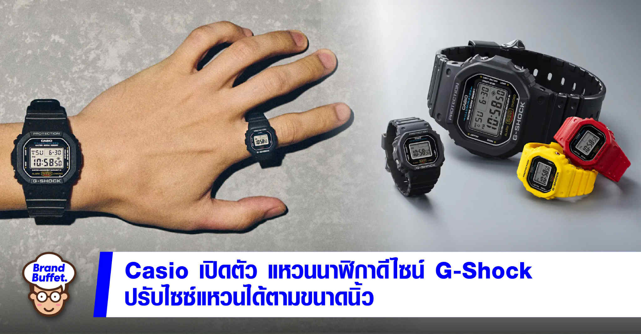 หลังจากเคยเปิดตัว Casio Ring ในทรงนาฬิกาย่อส่วน เพื่อเป็นการระลึกถึงวันครบรอบ 50 ปีที่ Casio เข้าสู่ธุรกิจนาฬิกาดิจิทัลไปเมื่อปีที่ผ่านมา ล่าสุด Casio ก็ได้ประกาศเปิดตัว Casio Ring รุ่นใหม่กันแล้ว โดยคราวนี้ได้รับแรงบันดาลใจจากรุ่น G-Shock DW-5600 ที่หลายคนหลงรักกันเลยทีเดียว แถมยังใช้สายและตัวเรือนเรซินที่ปรับขนาดได้ตามนิ้วของผู้สวมใส่ด้วย
