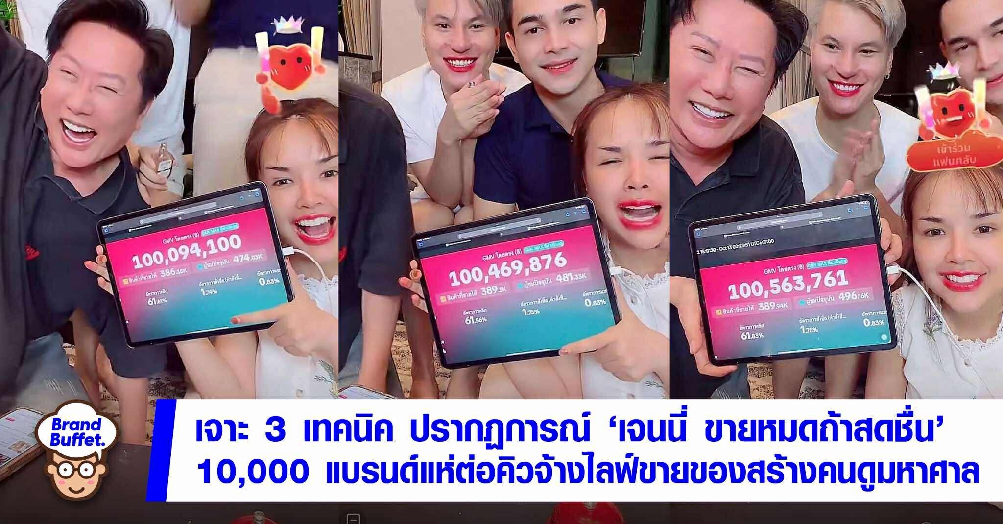 “เทศกาลเจนนี่” ไลฟ์ขายของบน TikTok 4 วัน สร้างยอดขายรวมเกือบ 300 ล้านบาท แบรนด์สินค้าแห่เข้าหาติดต่อมาแล้ว 10,000 แบรนด์ จ่ายเงินรอคิวไลฟ์แล้ว 5,000 แบรนด์ กลายเป็น ปรากฏการณ์ “เจนนี่” และกรณีศึกษาบทเรียนการตลาดที่น่าสนใจ