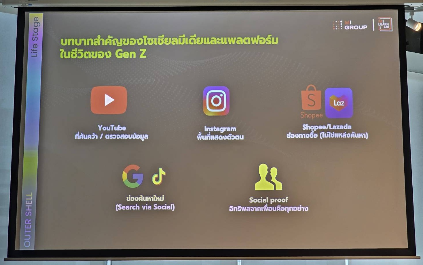 คุณณัฐพันธุ์ ไพรัชวรรณ Strategic Planning Manager MI GROUP กล่าวว่า Gen Z คือตัวแทนของ Early Force พลังวัยต้นที่กำลังกำหนดอนาคตการบริโภคและวัฒนธรรมใหม่ของประเทศ กลุ่มนี้กำลังกลายเป็นกำลังซื้อหลักในอีก 7 ปีข้างหน้า