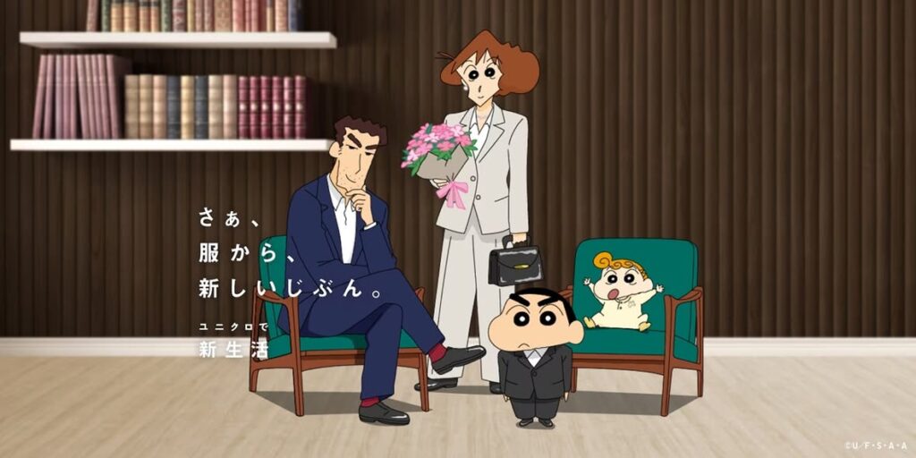 ทางด้านครอบครัวโนฮาระ นี่ไม่ใช่ครั้งแรกที่ครอบครัวนี้รับบทบาทสำคัญให้กับบแรนด์ดัง เพราะก่อนหน้านี้ก็เคยถ่ายแบบให้กับ Uniqlo เพื่อแคมเปญต้อนรับฤดูใบไม้ผลิ ที่ถือเป็นฤดูแห่งการเริ่มต้นสำหรับคนญี่ปุ่น แคมเปญนี้ของยูนิโคล่จึงชวนบ้านโนฮาระมาปรับลุคแต่งตัวทางการกันทั้งบ้าน เพื่อโชว์ให้เห็นว่า Uniqlo มีเสื้อผ้าหลากหลายทั้งผู้ชาย ผู้หญิง และเด็ก เราเลยได้เห็นชินจังในมาดเท่