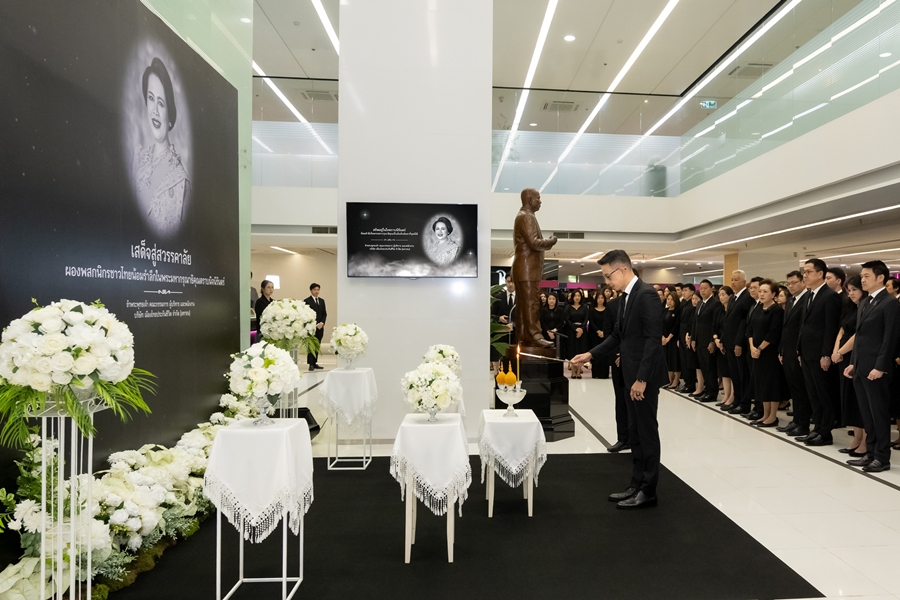 ในโอกาสนี้ นายสาระ ล่ำซำ ประธานเจ้าหน้าที่บริหาร ได้กล่าวถวายความอาลัย พร้อมกันนี้ คณะผู้บริหารและพนักงาน ได้พร้อมใจกันยืนสงบนิ่ง และลงนามในสมุดถวายความอาลัย เพื่อแสดงความจงรักภักดี และน้อมรำลึกถึงพระมหากรุณาธิคุณที่ทรงมีต่อพสกนิกรชาวไทย ตลอดระยะเวลาที่ทรงปฏิบัติพระราชกรณียกิจน้อยใหญ่นานัปการ ตามที่ทรงตั้งพระราชปณิธานอย่างแน่วแน่ ในการบำเพ็ญพระราชกรณียกิจมาตลอดพระชนม์ชีพ เพื่อบำบัดทุกข์บำรุงสุข แก่พสกนิกรชาวไทยในทุกหนแห่ง อีกทั้ง ยังทรงส่งเสริมงานด้านศิลปวัฒนธรรม หัตถศิลป์ไทย ตลอดจนการอนุรักษ์ธรรมชาติและสิ่งแวดล้อม รวมทั้งการพัฒนาคุณภาพชีวิตของประชาชนในถิ่นทุรกันดาร ซึ่งสะท้อนถึงพระเมตตาของ สมเด็จพระนางเจ้าสิริกิติ์ พระบรมราชินีนาถ พระบรมราชชนนีพันปีหลวง สมดังพระราชสมัญญา “พระแม่ของแผ่นดิน”
