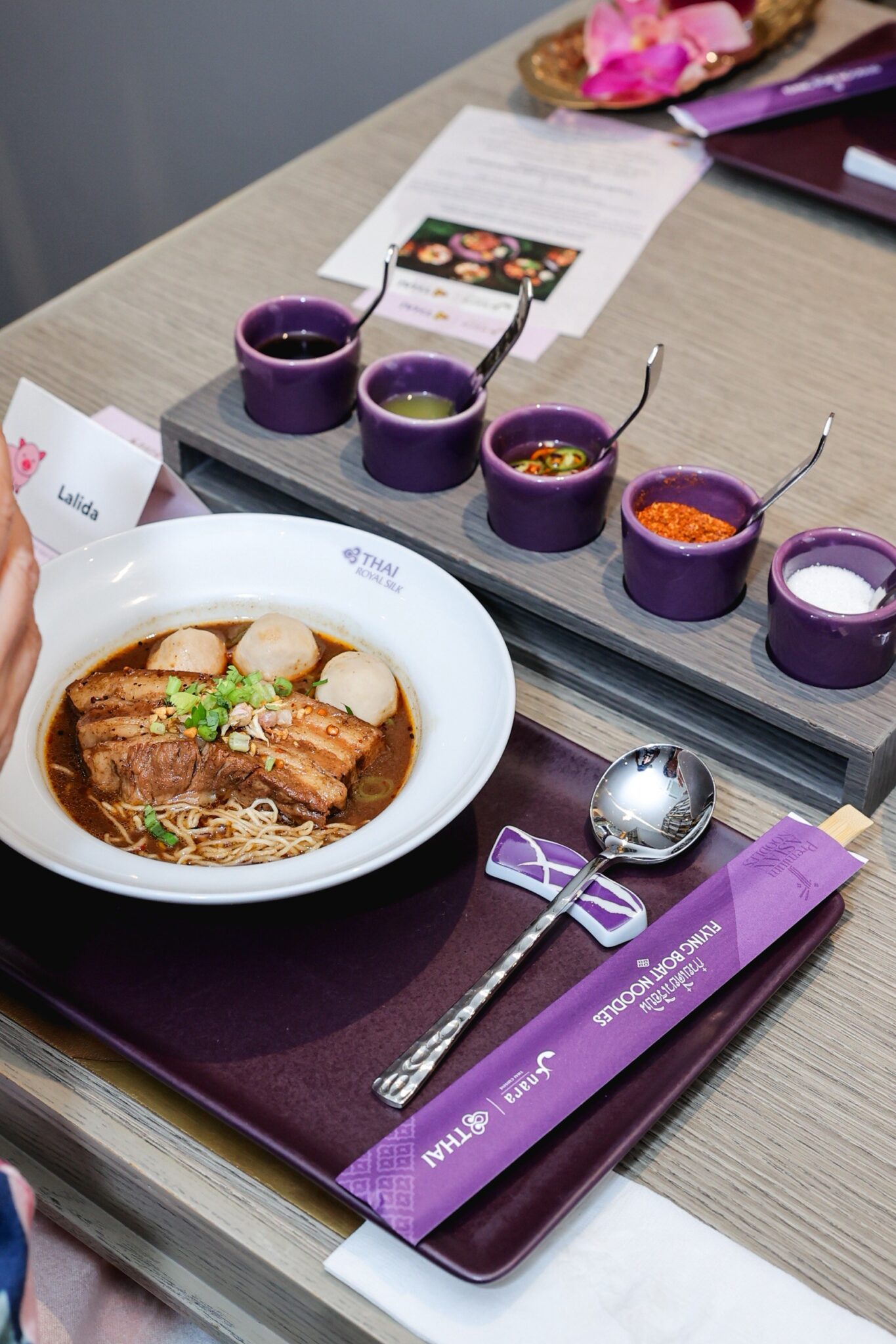 นอกจากนี้ทางร้านนาราไทย มีโอกาสต้อนรับ คุณวิชญ์ กิจจาทร ผู้อำนวยการฝ่ายขาย บริษัท การบินไทย จำกัด (มหาชน) และเลี้ยงรับรองประสบการณ์มื้อพิเศษให้กับสมาชิกรอยัลออร์คิดพลัส ลูกค้าผู้โชคดีกลุ่มแรกของการบินไทย ร่วมสัมผัสรสชาติ ‘ก๋วยเตี๋ยวเรือบิน’ สร้างความประทับใจก่อนเสิร์ฟจริงบนฟ้า ในวันที่ 1 พฤศจิกายนนี้ เป็นต้นไป