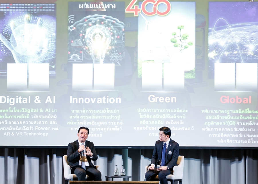 ไฮไลต์ช่วงแรกของงานเริ่มด้วยการเสวนาในหัวข้อ “The Power of AI in Printing & Packaging” โดยได้รับเกียรติจากสองนายกสมาคมชั้นนำ ได้แก่ คุณพงศ์ธีระ พัฒนพีระเดช นายกสมาคมการพิมพ์ไทย และคุณวิวัฒน์ อุตสาหจิต นายกสมาคมการบรรจุภัณฑ์ไทย ที่ร่วมแลกเปลี่ยนมุมมองถึงบทบาทของเทคโนโลยี AI ที่จะเข้ามาปฏิวัติอุตสาหกรรมการพิมพ์และบรรจุภัณฑ์ในอนาคต โดยชี้ให้เห็นว่า “AI จะช่วยเพิ่มประสิทธิภาพ ความแม่นยำ และความหลากหลายในงานออกแบบ ตอบโจทย์ทุกความต้องการของลูกค้าได้อย่างไร้ขีดจำกัด”