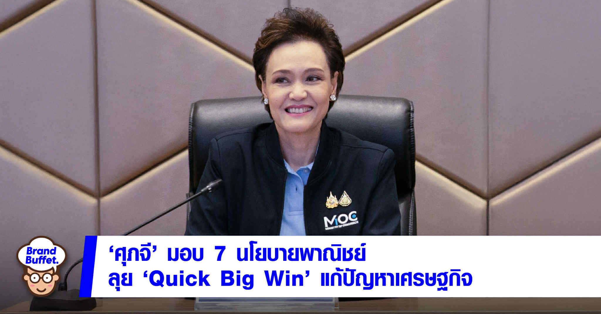 คุณศุภจี สุธรรมพันธุ์ รัฐมนตรีว่าการกระทรวงพาณิชย์ เป็นประธานการประชุมมอบนโยบายแก่ผู้บริหารระดับสูง ข้าราชการ พาณิชย์จังหวัดทั่วประเทศ และทูตพาณิชย์ประจำสถานทูตไทยในต่างประเทศ ผ่านระบบออนไลน์ เพื่อขับเคลื่อนภารกิจของกระทรวงพาณิชย์ในระยะสั้นและระยะยาว โดยได้มอบ 7 นโยบายสำคัญ ภายใต้แนวทาง “Quick Big Win” ที่มุ่งให้เกิดผลสัมฤทธิ์ทางเศรษฐกิจโดยเร็ว พร้อมสร้างรากฐานที่มั่นคงและยั่งยืน โดยย้ำว่า “การทำงานของกระทรวงต้องยึดหลัก ร่วมมือ–โปร่งใส–ประชาชนได้ประโยชน์สูงสุด”