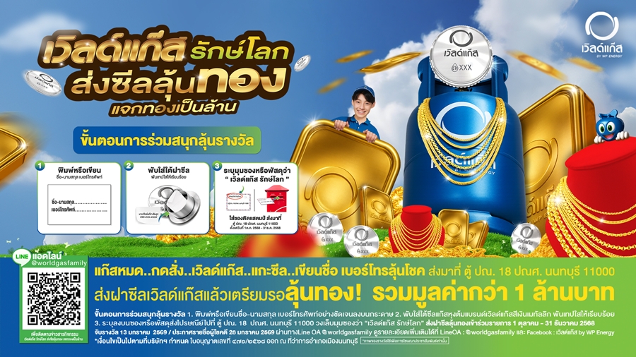 แคมเปญ ‘เวิลด์แก๊ส รักษ์โลก ส่งซีลลุ้นทอง แจกทองเป็นล้าน’ เริ่มตั้งแต่วันที่ 1 ตุลาคม 2568 ถึงวันที่ 31 ธันวาคม 2568 โดยจะมีการจับรางวัลในวันที่ 13 มกราคม 2569 และประกาศผลผ่านทาง LINE Official Account: @worldgasfamily ในวันที่ 28 มกราคม 2569