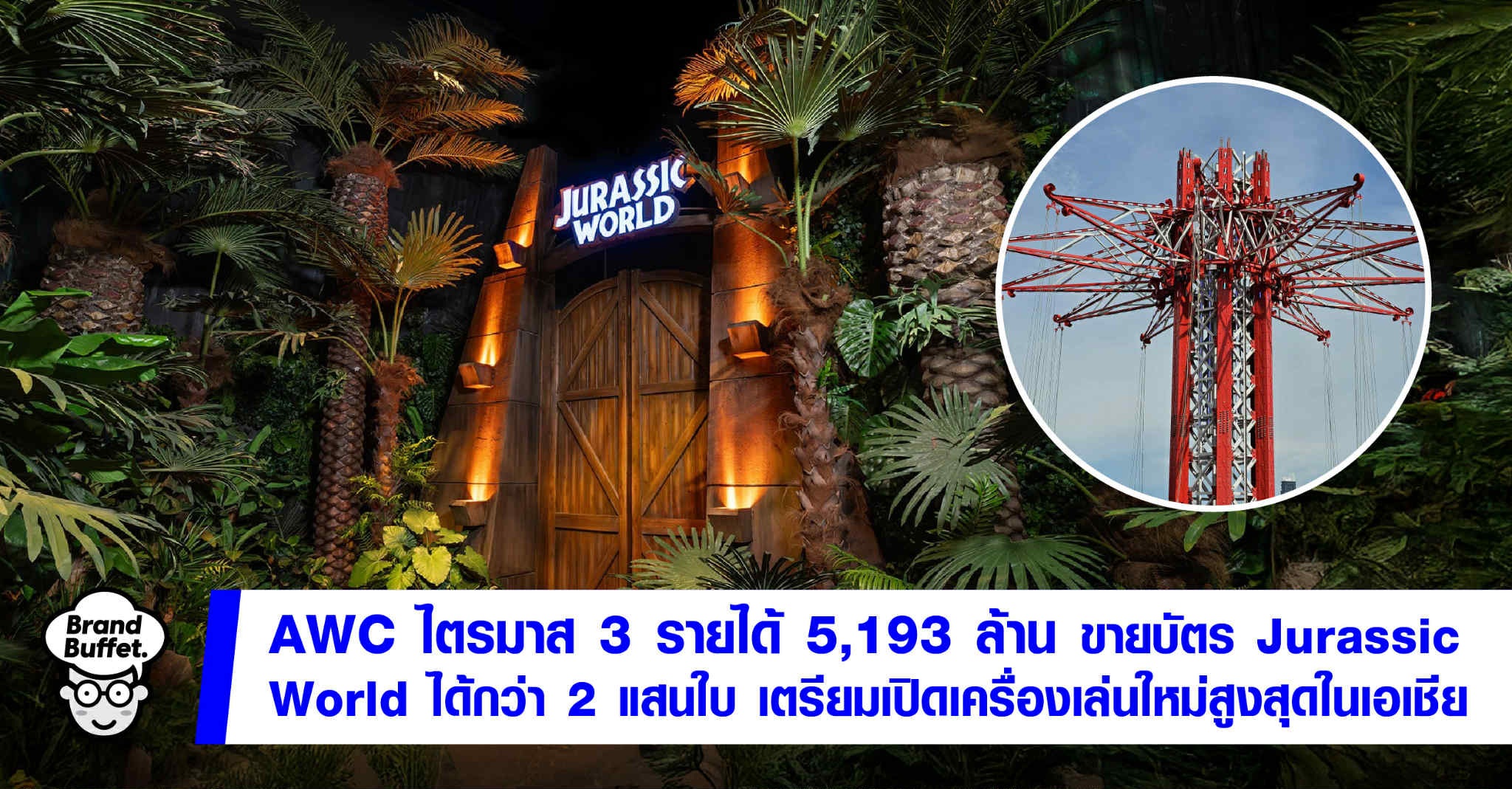 โครงการ Jurassic World: The Experience ดึงดูดนักท่องเที่ยวเข้า “เอเชียทีค” ดันรายได้กลุ่มธุรกิจศูนย์การค้าของ AWC เติบโตก้าวกระโดด 44% เตรียมเปิดเครื่องเล่น SkyFlyers สูงที่สุดในเอเชีย ต้อนรับเทศกาลท่องเที่ยวปลายปีนี้