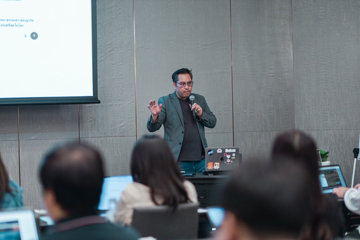 “ท่ามกลางความเปลี่ยนแปลง ความรู้แบบ how to จะหมดอายุเร็วมาก แต่ wisdom, passion, purpose และความเข้าใจธุรกิจ–ลูกค้าเชิงลึกคือสิ่งที่มนุษย์ยังถือไพ่เหนือ AI เราต้องกล้ายอมรับว่ายังไม่รู้กับเทคโนโลยีใหม่ ๆ และใช้ AI ในการอัปเดตตัวเองทุกวัน และกลับมาถามตัวเองให้ได้ว่า “เราอยากทำอะไรให้ใคร” จากนั้นจึงใช้ AI เป็นคันโยกเพิ่มศักยภาพให้กับตัวเองและองค์กรต่อไป” คุณณพวัฒน์กล่าว