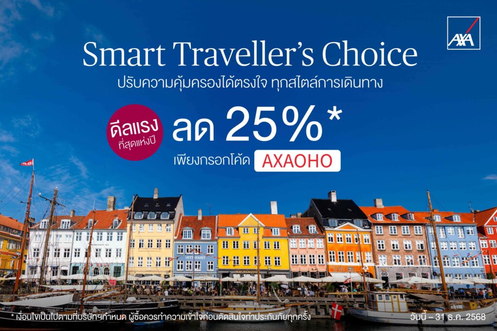 แอกซ่าประกันภัย ร่วมฉลองเทศกาลท่องเที่ยวส่งท้ายปี มอบของขวัญพิเศษเอาใจนักเดินทางด้วยส่วนลด 25% สำหรับแผนประกันภัยการเดินทาง “Smart Traveller’s Choice” แผน Advance และ Max* เพื่อตอบรับกระแสความต้องการคุ้มครองที่ยืดหยุ่นและตอบโจทย์ไลฟ์สไตล์เฉพาะบุคคล โดยแอกซ่าพร้อมสนับสนุนให้ทุกการเดินทางในช่วงเทศกาลปีใหม่นี้เต็มไปด้วยความมั่นใจและความอุ่นใจสูงสุด เพียงกรอกโค้ดส่วนลด “AXAOHO” ตั้งแต่วันนี้ – 31 ธันวาคม 2568
