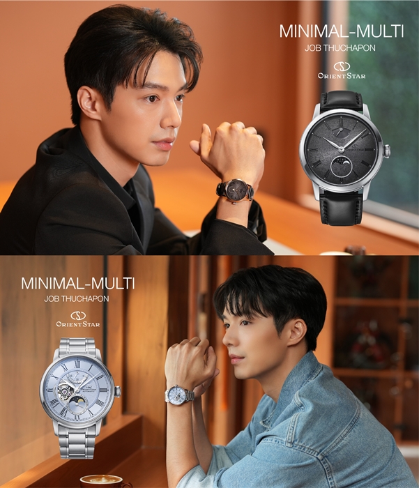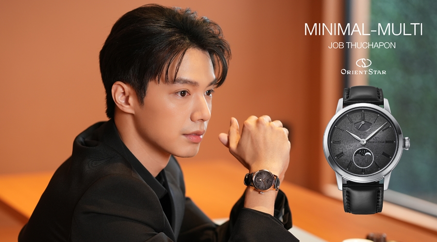 อย่างชุดที่หนุ่มจ๊อบจะเลือกใส่ก็คือ สไตล์ business casual สูทสีดำพอดีตัวคู่กับเสื้อเชิ้ตสีดำ และกางเกงสแล็คสีดำทรงเดฟที่ทำให้ดูสูงเพรียวคู่กับรองเท้าคัทชูหนังสีดำดูเรียบหรู แม้ชุดจะดูเรียบแต่ก็แฝงไว้ด้วยคัทติ้งที่ประณีตไม่ธรรมดา หนุ่มจ๊อบบอกว่า “เป็นดีไซน์ที่สะอาดตาแต่ซ่อนความซับซ้อนของรายละเอียดไว้อย่างชาญฉลาดเหมาะสำหรับคนที่มองหาแฟชั่นแบบที่ใส่ได้ทุกวัน แต่ยังคงความพิเศษในทุกชิ้น” ในส่วนของนาฬิกานั้นเป็นเรื่องที่หนุ่มจ๊อบจะให้ความสำคัญมากเป็นพิเศษเพราะส่วนตัวจะไม่ใช้เครื่องประดับเลย ฉะนั้นนาฬิกาข้อมือสำหรับเขาจึงเป็นเหมือนตัวแทนเครื่องประดับเพียงชิ้นเดียวที่ใส่อยู่บนตัว จึงต้องเลือกให้เข้ากับเสื้อผ้าและสะท้อนความเป็นตัวตนของเขาให้มากที่สุด อย่างนาฬิกา Orient Star รุ่น M45 F8 Mechanical Moon Phase Hand Winding ที่เขาเลือกใส่ในครั้งนี้ “เป็นนาฬิการุ่นใหม่ ลิมิเต็ดอิดิชั่นที่เหมาะมากกับชุดสูทของผม มองแล้วตรงกับแนวคิดในแบบ Minimal-multi อย่างที่ผมชอบ คือมีดีไซน์ที่ผสานความมินิมอลเข้ากับรายละเอียดที่ประณีต เส้นสายเรียบง่าย ความสมบูรณ์แบบของงานฝีมือที่ทุกองค์ประกอบจะสะท้อนความหรูหราและความเรียบง่ายแต่แฝงด้วยรายละเอียดที่โดดเด่นไว้ในเวลาเดียวกัน ช่วยให้ความเป็นเดรสนั้นสมบูรณ์แบบมากยิ่งขึ้น” หนุ่มจ๊อบกล่าว