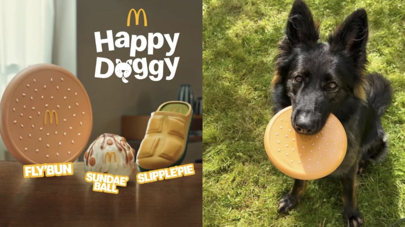 ในยุคที่หลายครอบครัวเริ่มเปลี่ยนไปเติมเต็มชีวิตด้วยการเลี้ยงสัตว์อย่างสุนัขหรือแมวแทนการมีเจ้าตัวน้อย บางที “แฮปปี้มีล” ชุดของเล่นจากแมคโดนัลด์ (McDonald’s) ขวัญใจเด็ก ๆ ก็อาจต้องถึงเวลาปรับตัวเช่นกัน โดยแมคโดนัลด์ในฝรั่งเศสได้เปิดตัวชุด “แฮปปี้ด็อกกี้” (Happy Doggy) ของเล่นทรงคุ้นตาที่ไม่เพียงเข้ากับแบรนด์ตัวเอง แต่น้องหมายังสามารถงับได้อย่างสบายใจออกมาให้เหล่าทาสได้สะสมกันแล้ว