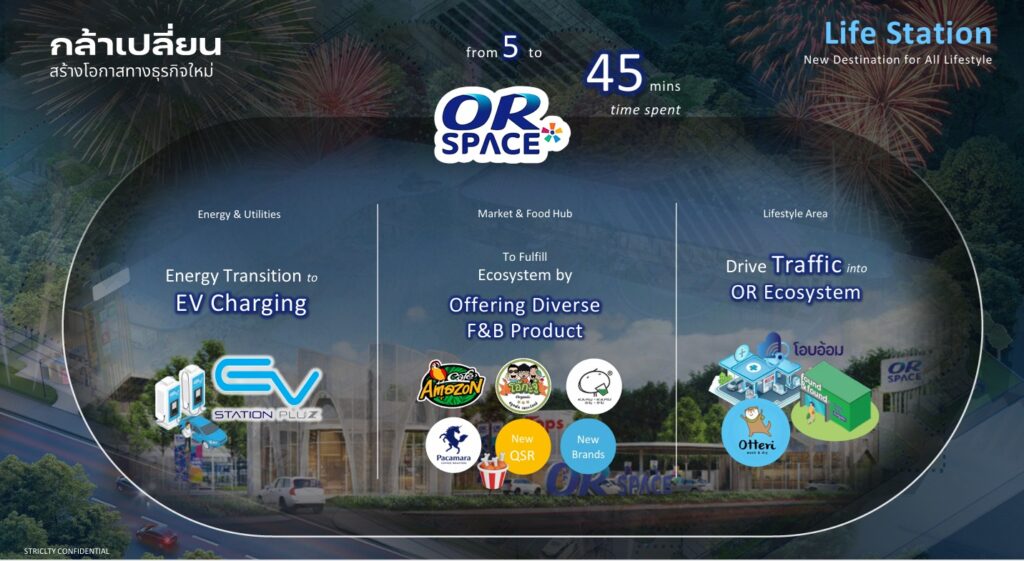 ม.ล.ปีกทอง คาดหวังว่า การพัฒนาบริการในสถานีบริการ PTT Station และเติมบริการให้หลากหลาย โดยเฉพาะเครื่องดื่มและอาหาร รวมถึงบริการด้านสุขภาพ เช่น คลินิกโอบอ้อม จะช่วยเพิ่มจำนวนคนมาใช้บริการเป็น 4.3 ล้านคนต่อวันในปี 2569 และเป็น 5 ล้านคนต่อวันในปี 2571 ทั้งยังจะทำให้สัดส่วนรายได้ของกลุ่มธุรกิจ Lifestyle ขยับเพิ่มขึ้นเป็น 30% เมื่อประกอบกับการขยายสถานีชาร์จ EV Station PluZ ให้ครอบคลุมทั่วประเทศตอบรับเทรนด์การขยายตัวของ EV โดยตั้งเป้าขยายสถานีชาร์จให้ครบ 7,000 หัวชาร์จในปี 2573 จากปัจจุบันมีหัวชาร์จกว่า 3,300 หัวชาร์จ ทั้งหมดก็จะช่วยสร้างรายได้และกำไรอย่างยั่งยืนให้ OR ท่ามกลางความผันผวนที่เกิดขึ้นได้