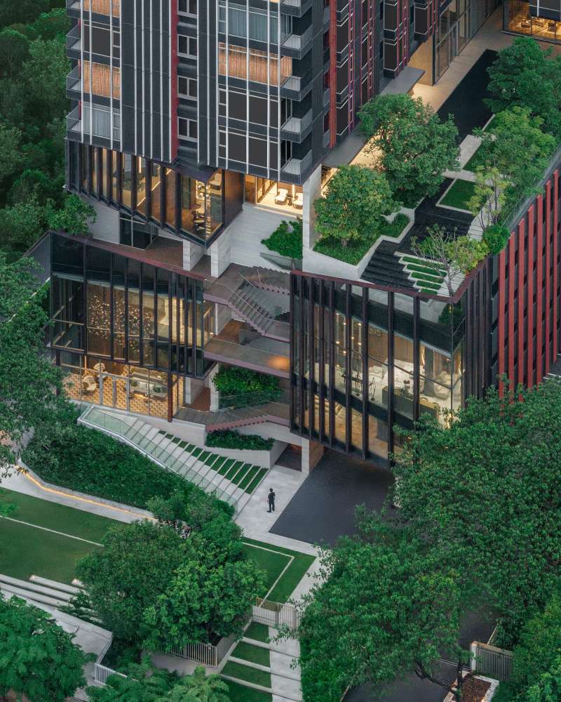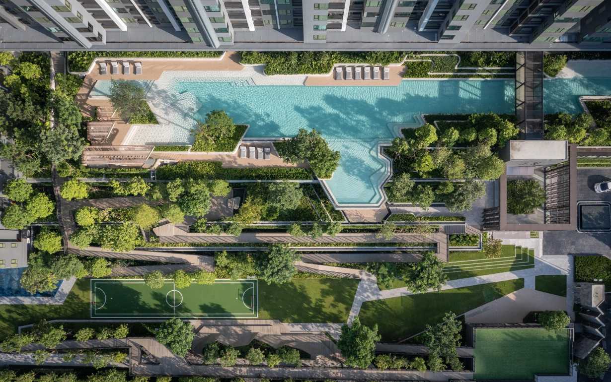 ขณะที่ LIFE Sathorn Sierra – LIVING TERRAIN: A Layered Habitat ถือเป็นต้นแบบการออกแบบพื้นที่ส่วนกลางในคอนโดมิเนียมอย่างเข้าใจคนเมือง ที่ต้องการพาตัวเองหลีกหนีจากความวุ่นวายและเร่งรีบในทุกวัน ด้วยการใช้เวลาใกล้ชิดกับธรรมชาติอย่างแท้จริง AP จึงนำ The Unspoken Needs นี้มาเป็นไอเดียตั้งต้น และทำงานร่วมกับ AP Design Lab สถาปัตยกรรม ภูมิสถาปัตยกรรม และวิศวกรรม เพื่อออกแบบพื้นที่ส่วนกลางของ LIFE Sathorn Sierra ให้เป็นมากกว่าพื้นที่สีเขียวในคอนโดทั่วไป โดยนำสิ่งแวดล้อมทางธรรมชาติมาเป็นศูนย์กลางของชีวิตและผนวกเข้ากับโครงสร้างอาคารอย่างกลมกลืน จนออกมาเป็นแพลตฟอร์มพื้นที่ส่วนกลาง 5 ระดับ ประกอบด้วยเครือข่ายสวน ทางเดิน สระว่ายน้ำ รวมถึงพื้นที่สำหรับการออกกำลังกายและผ่อนคลาย เพื่อให้ผู้อยู่อาศัยได้ใช้เวลาฮีลทั้งใจและกาย แถมยังช่วยปกป้องความหลากหลายทางชีวภาพในเมืองไปพร้อมกัน