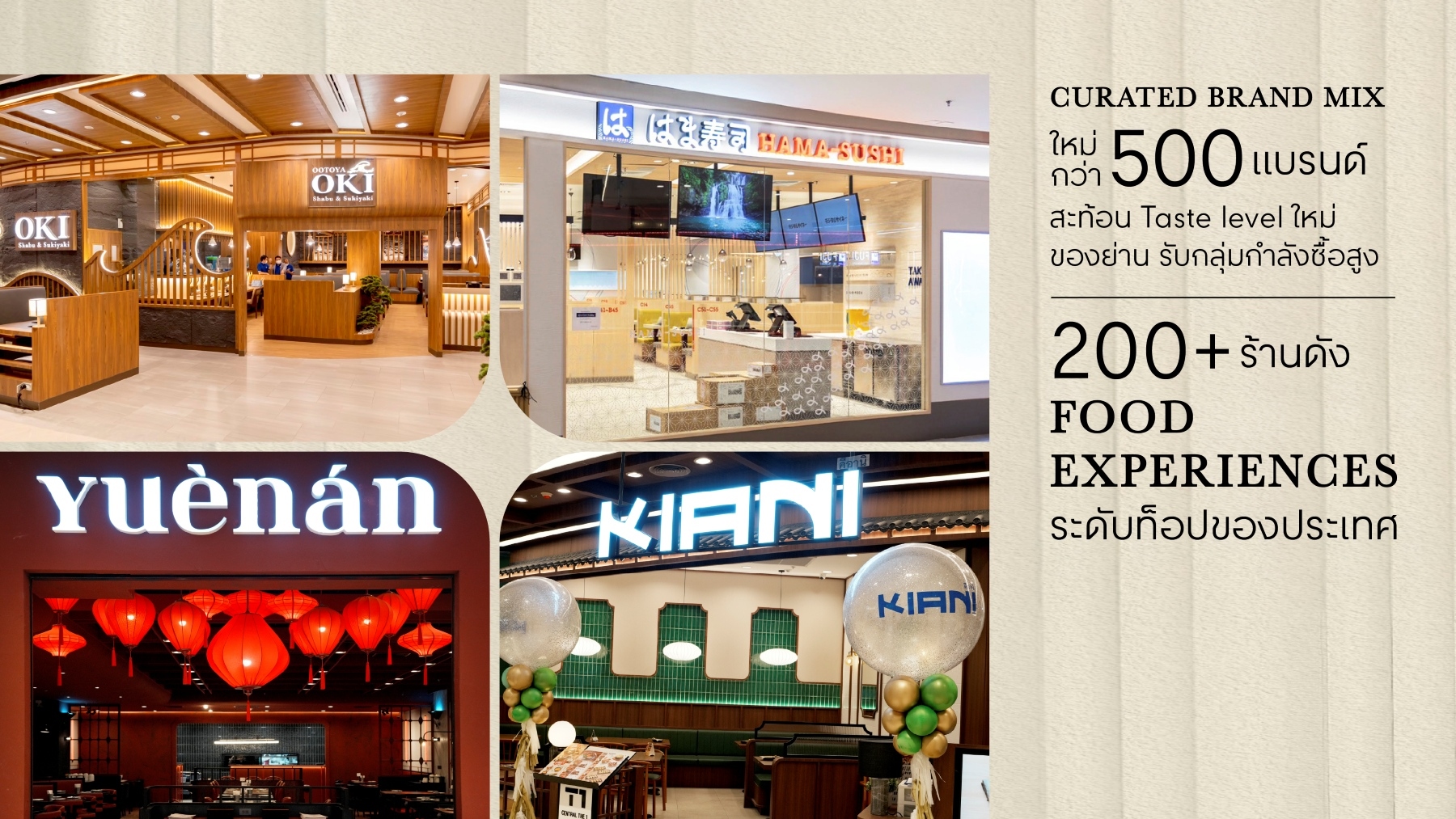 • ร้าน First time in Thailand  เช่น Hama Sushi สายพานจากญี่ปุ่น, Ootoya Oki ชาบูมันปู