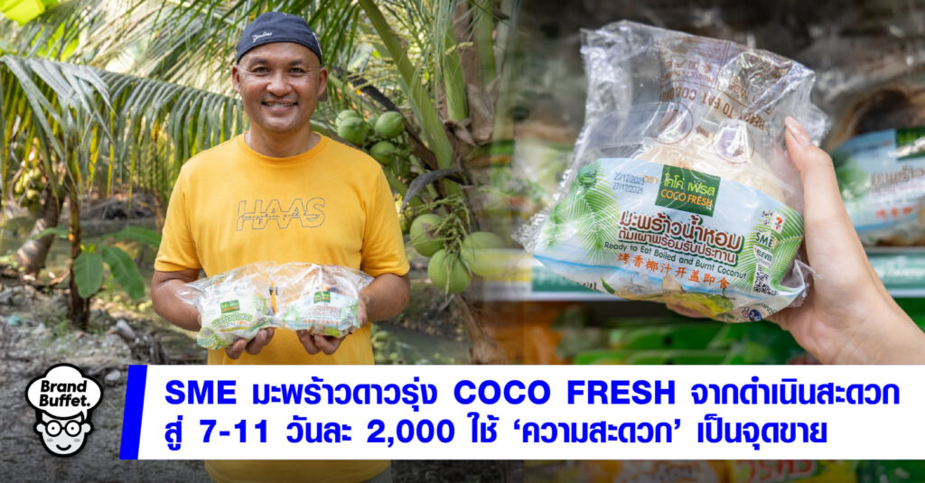 สำหรับ โคโค่ เฟรส (COCO FRESH) แบรนด์ SME มะพร้าวน้ำหอมพร้อมทานจากอำเภอดำเนินสะดวก จังหวัดราชบุรี คือหนึ่งในตัวอย่างที่สะท้อนความสำเร็จในการปรับตัว พัฒนาสินค้า สร้างมาตรฐาน ร่วมกับบริษัท ซีพี ออลล์ จำกัด (มหาชน) ผู้บริหารเซเว่น อีเลฟเว่น และเซเว่น เดลิเวอรี่ จนเติบโตได้จริงในระบบค้าปลีกสมัยใหม่ พร้อมทั้งยังได้ช่วยเกษตรกรมะพร้าว ด้วยการนำสินค้าเข้าสู่เซเว่น อีเลฟเว่น ถึงวันละกว่า 2,000 ลูก