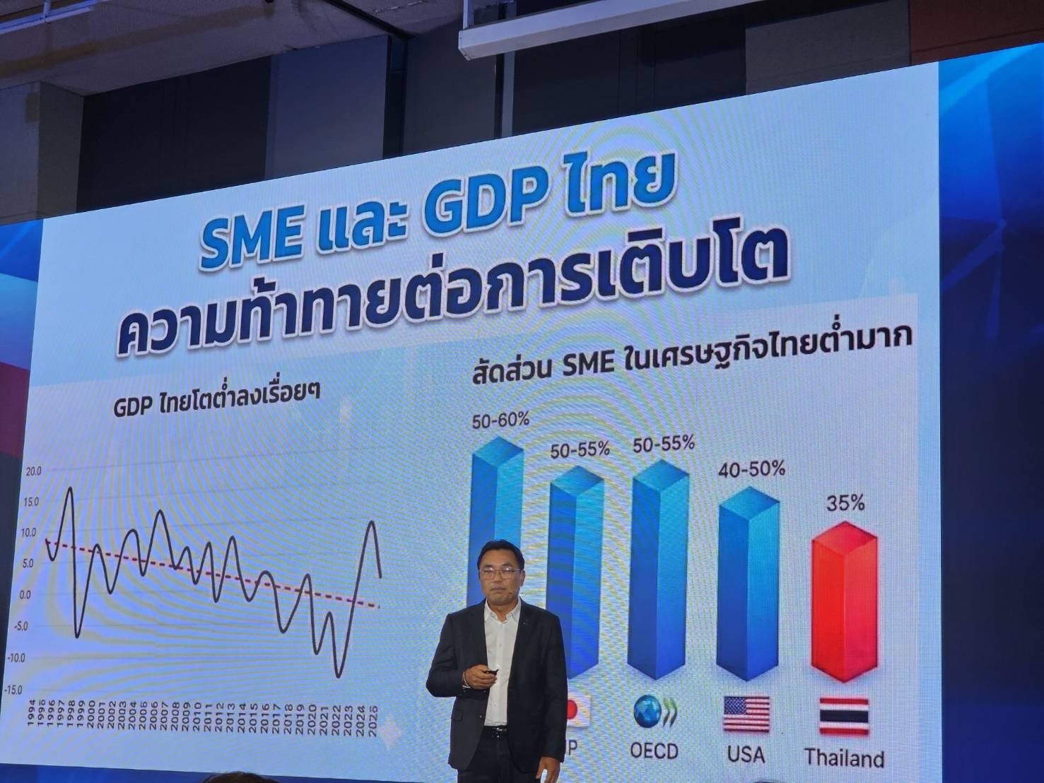“หากเกิดความร่วมมือขับเคลื่อนอุตสาหกรรมและร่วมกันพลิกโฉม SMEs ไทย เพื่อให้ SMEs ได้รับประโยชน์และเติบโตจากสัดส่วน 35% เป็นมากกว่า 50% เพื่อผลักดันจีดีพีไทยโตให้ได้ 5% พ้นจากวิกฤติโตต่ำตลอดช่วง 10 ปีที่ผ่านมา”