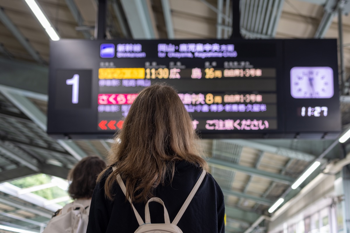 Passenger Checking Shinkansen Departure Information; Shutterstock ID 2551605791; purchase_order: -; job: -; client: -; other: