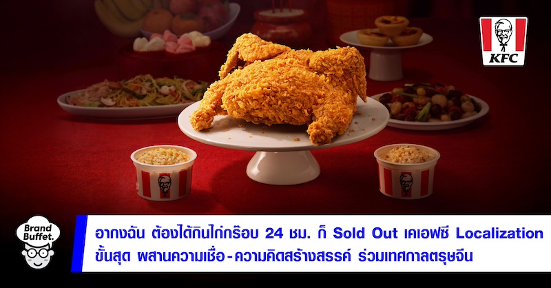 การเฉลิมฉลองตรุษจีนในปัจจุบัน นอกจากจะเป็นการแสดงออกถึงความเคารพในประเพณีดั้งเดิมแล้วยังกลายเป็นช่วงเวลาที่ทุกคนมองหาประสบการณ์ใหม่ๆ ที่ทั้งสนุกและน่าจดจำ ดังนั้น KFC ประเทศไทย จึงขอฉีกกรอบการไหว้เจ้า และแคมเปญตรุษจีนแบบเดิมๆ ด้วยไอเดียฉีกกรอบสุดๆ เปิดตัวเมนูเอ็กซ์คลูซีฟ “ไก่กรอบทั้งตัว” ครั้งแรกของประเทศไทย และผลปรากฏว่า Sold Out ใน 24 ชั่้วโมง
