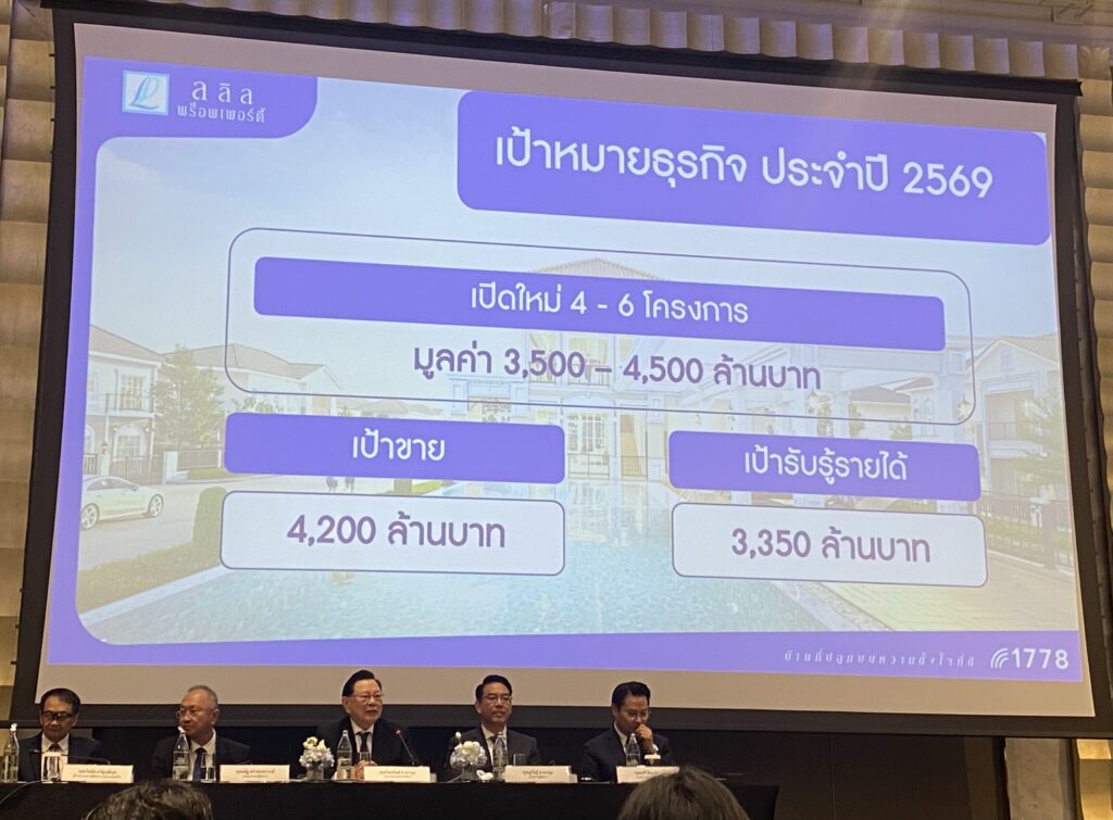 ปี 2568 เป็นปีที่ตลาดอสังหาฯ ไทยหดตัวอย่างหนัก กว่า 17% ส่วน “บริษัท ลลิล พร็อพเพอร์ตี้ จำกัด (มหาชน)” หรือ “LALIN” มีการเปิดตัวโครงการมูลค่า 3,500-5,000 ล้านบาท ขณะที่ปี 2569 ตั้งเป้ารับรู้รายได้เติบโตเล็กน้อย เพียง 3-5% จากปีก่อน แต่ยอดขายคาดว่าจะ “ทรงตัว” เท่ากับปีที่แล้วหรืออยู่ที่ 4,200 ล้านบาท