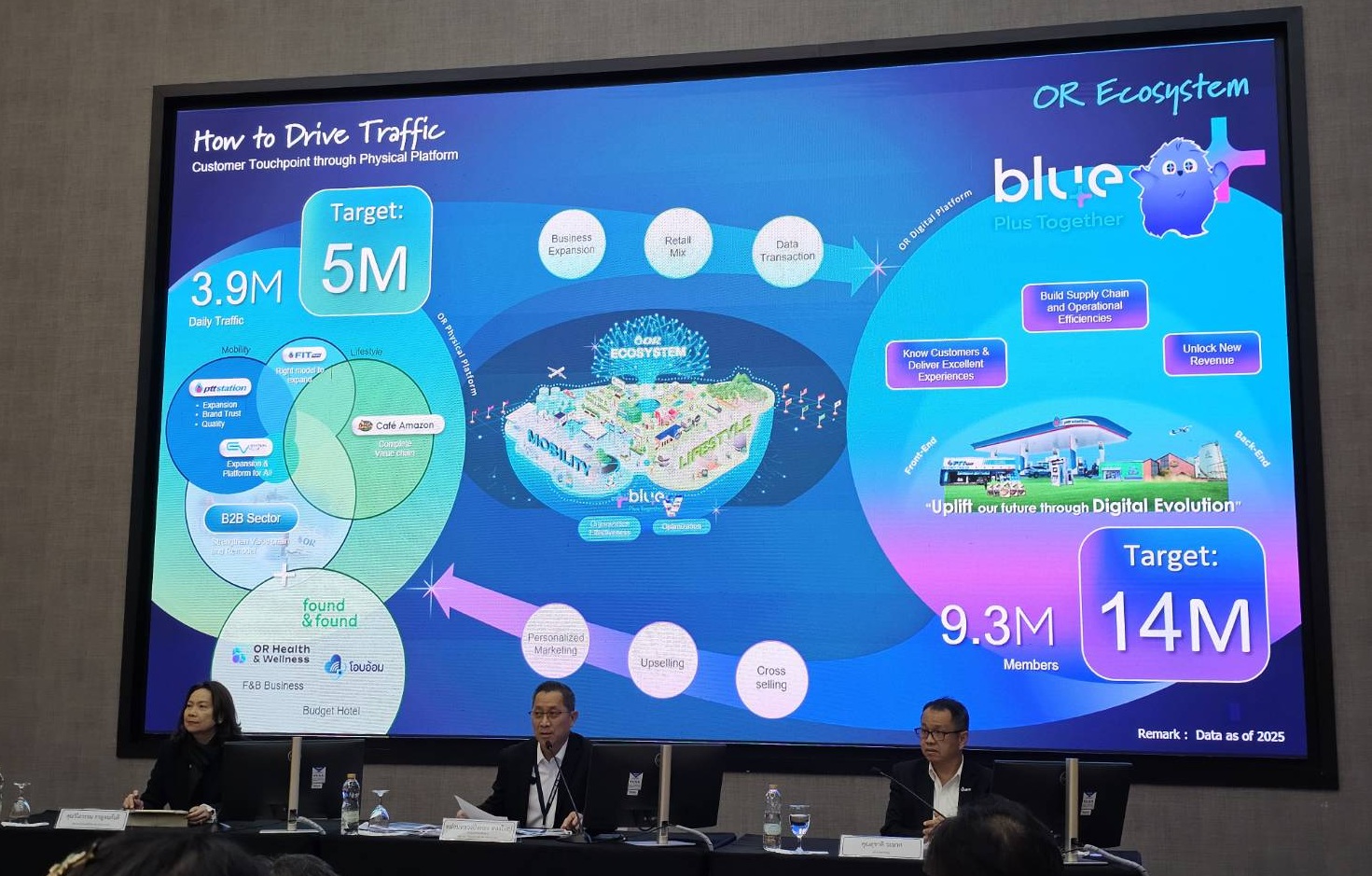 กลยุทธ์ของ OR ในการขยายธุรกิจใหม่ที่ตอบสนองการใช้ชีวิตของผู้บริโภค (All Lifestyles) เติมเต็มระบบนิเวศน์ของ OR (OR Ecosystem) ปี 2568 มีผู้มาใช้บริการใน OR Ecosystem จำนวน 3.9 ล้านคนต่อวัน ไม่ว่าจะเป็น สถานีบริการน้ำมัน PTT, EV Station PluZ, Fit Auto, Cafe Amazon ร้านสะดวกซื้อเซเว่น อีเลฟเว่น จิฟฟี่ รวมทั้งร้านค้าปลีกอื่นๆ ของ OR