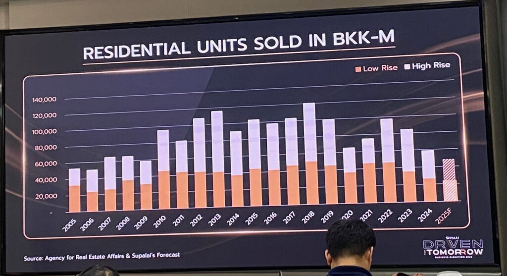 ปี 2568 ไม่ใช่แค่ปีที่เศรษฐกิจไทยไม่ดี แต่ ดร.ประทีป ยอมรับว่า เป็นปีที่ตลาดอสังหาฯ ไทย “ต่ำสุด” ในรอบ 20 ปี เพราะปริมาณการขายที่อยู่อาศัยในกรุงเทพฯ และปริมณฑลปี