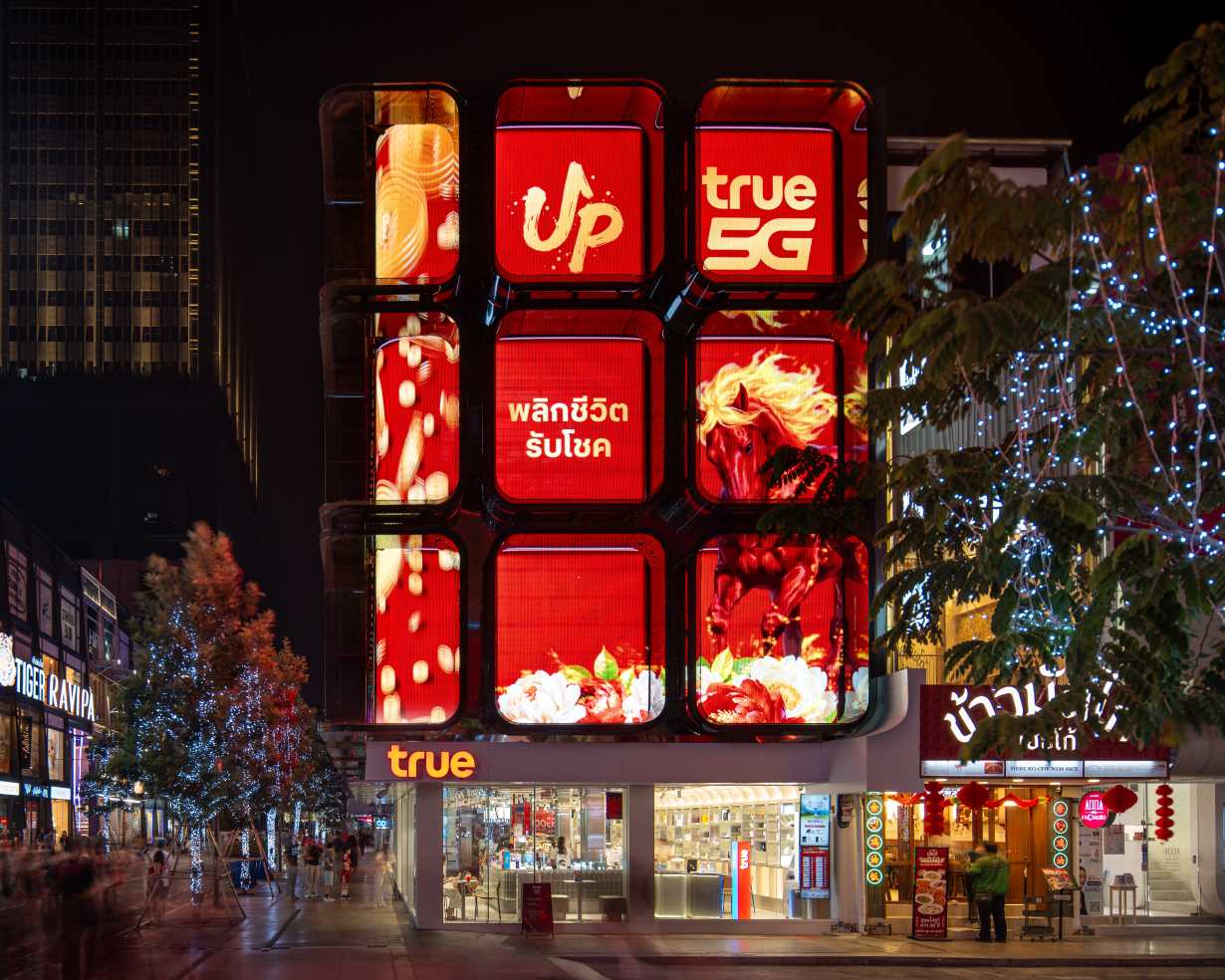 ไฮไลต์สำคัญของแคมเปญคือการเปิดตัว “ม้ามงคล” ในรูปแบบ 3D และ 2D บนจอดิจิทัล ณ สยามสแควร์ ซอย 2 และซอย 3 ให้ผู้คนได้ร่วมสัมผัสคำอวยพรปีใหม่ในรูปแบบใหม่ โดยม้ามงคลได้ถูกออกแบบร่วมกันกับหมอช้าง – ทศพร ศรีตุลา ที่ร่วมถ่ายทอดความหมายของคำอวยพรจีนให้เข้ากับความเป็นผู้นำด้านเทคโนโลยีของ True5G ได้อย่างร่วมสมัย โดยใช้ภาพม้าที่กำลังวิ่งทะยานไปข้างหน้า พร้อมละอองทองจากแผงคอและหาง เปรียบเสมือนสัญญาณที่พุ่งแรงต่อเนื่อง และโอกาสที่ไหลเข้ามาอย่างต่อเนื่อง
