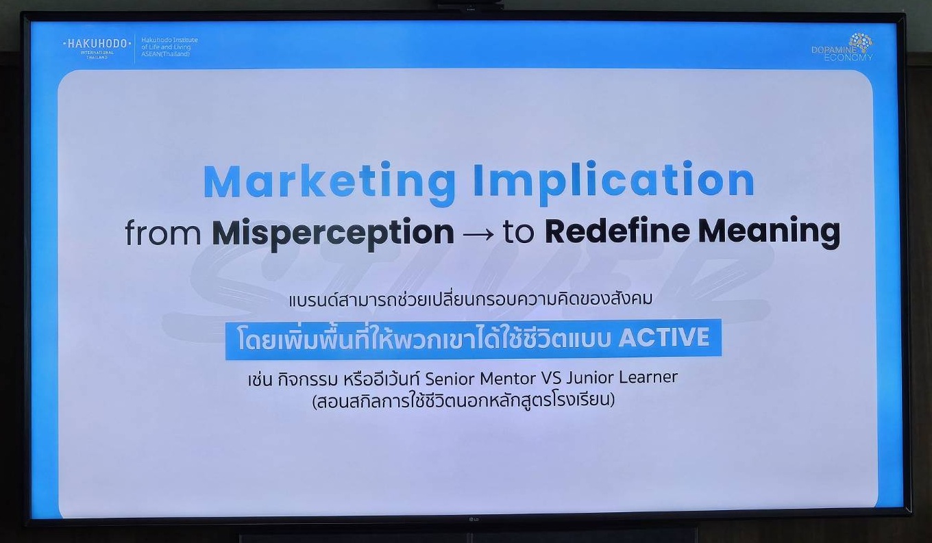 – สิ่งนี้สะท้อนภาวะ “การเข้าใจผิด” (Misperception) ระหว่าง ภาพจำของสังคม กับ ความจริงของหัวใจ ที่สังคมมักมองว่าการมีอายุมากขึ้นควรใช้ชีวิตช้าลง ทั้งที่ในความเป็นจริงแรงขับภายในของคนกลุ่มนี้ยังคง Active และมุ่งหาความหมายของชีวิตในรูปแบบของตนเอง