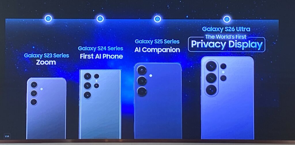 สำหรับซัมซุงพัฒนา AI Phone สู่ตลาดมา 3 รุ่นแล้ว เริ่มจาก Galaxy S24 ตามด้วย Galaxy S25 และล่าสุดคือ Galaxy S26 ที่เพิ่งเปิดตัวเมื่อต้นเดือนมีนาคมที่ผ่านมา และสามารถทำยอดจองล่วงหน้าเติบโตขึ้นถึง 1.4 เท่า หรือคิดเป็น 40% เมื่อเทียบกับปีก่อนหน้า อีกทั้งลูกค้า Gen Z ยังใช้งานเพิ่มขึ้นถึง 25% ด้วย เหตุผลสำคัญที่ทำให้ Galaxy S26 ได้รับความนิยม คุณสิทธิโชค มองว่า มี 2 ปัจจัยนั่นคือ “Innovation” ที่ตั้งต้นมาจากความต้องการของ Consumer