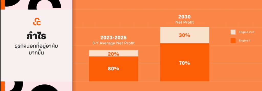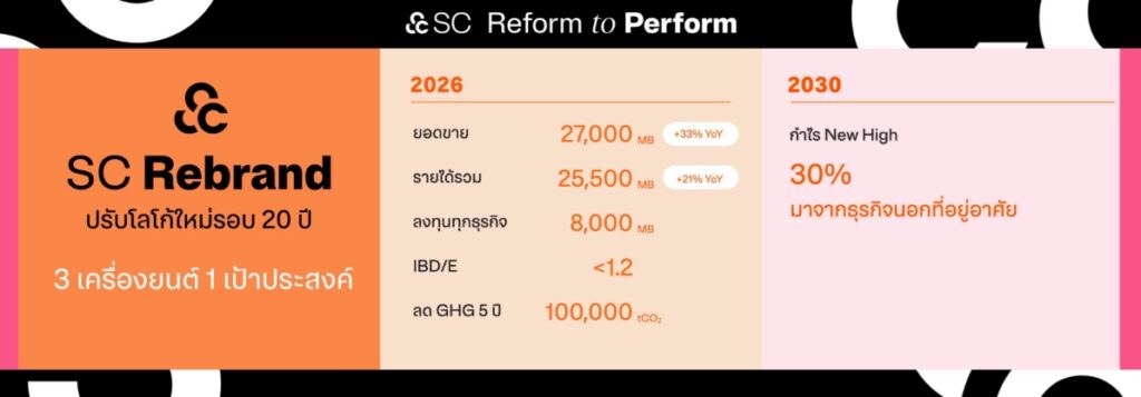 ปี 2569 รายได้และกำไรของ SC ยังคงมาจากธุรกิจอสังหาฯ โดยมีสัดส่วน 80% แต่ภายใน 5 ปีจากนี้ ต้องการสร้างกำไรสถิติใหม่ และต้องมาจากส่วนผสมใหม่ โดย 30% ต้องมาจากธุรกิจที่ไม่ใช่ที่อยู่อาศัยและธุรกิจใหม่ เพื่อบาลานซ์พอร์ต ให้องค์กรสามารถเติบโตกับโลกที่ผันผวนตลอดเวลา