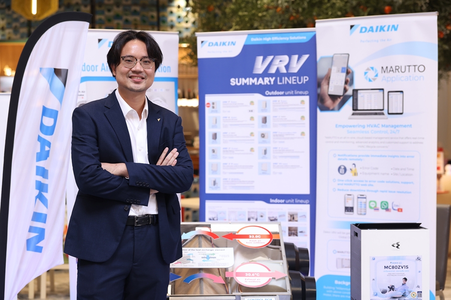 สำหรับการร่วมงานในครั้งนี้ ไดกิ้นได้นำเทคโนโลยีที่ตอบโจทย์การจัดการคุณภาพอากาศภายในอาคารมาร่วมจัดแสดง ประกอบด้วย ระบบปรับอากาศเชิงพาณิชย์ VRV เทคโนโลยีต้นแบบของไดกิ้นที่ช่วยควบคุมอุณหภูมิแบบแยกโซนและประหยัดพลังงาน ระบบระบายอากาศแลกเปลี่ยนความร้อน (Heat Reclaim Ventilator) ที่นำอากาศบริสุทธิ์จากภายนอกเข้าสู่อาคารโดยไม่สูญเสียพลังงาน เครื่องฟอกอากาศ ที่ผสานเทคโนโลยี Streamer เอกสิทธิ์เฉพาะของไดกิ้นในการสลายเชื้อโรค ควบคู่กับ Electrostatic HEPA Filter ที่ดักจับฝุ่นละเอียดได้ต่ำกว่า 2.5 ไมครอน และ ระบบบริหารจัดการ HVAC อัจฉริยะ MARUTTO
